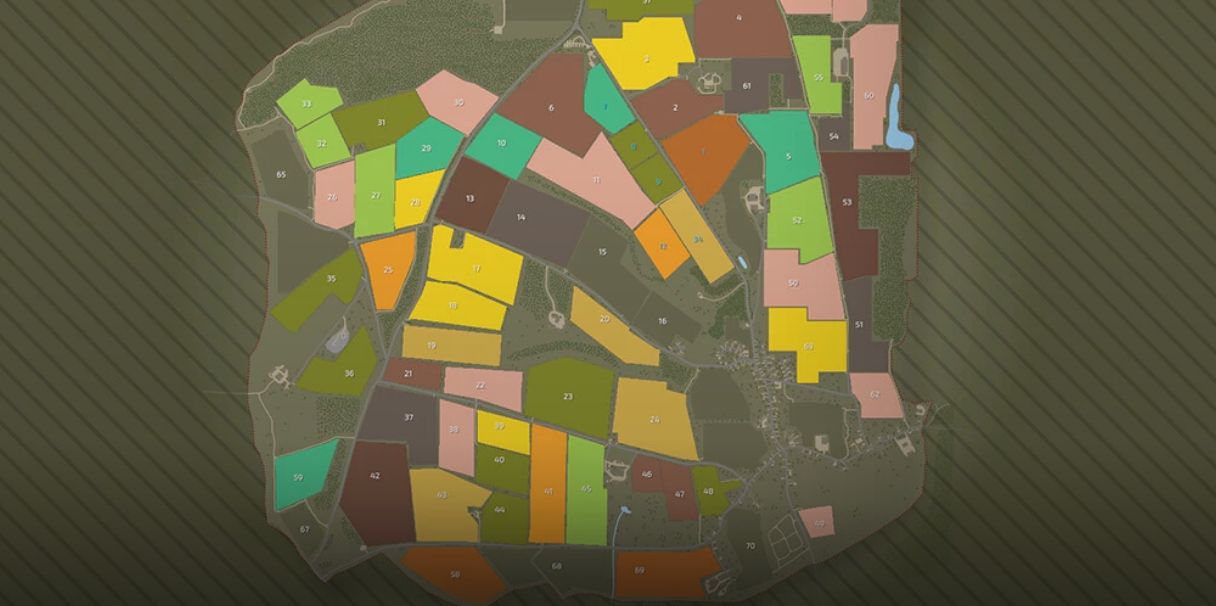 – 79 fields, including 5 with grass and 5 with forest