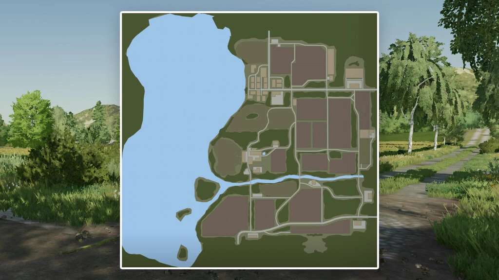 The fictional map is designed for small to medium-sized machines. It has a beautiful, rustic farm, 14 fields, 6 meadows, 1 forest area and 1 building site. In addition, the map is already equipped with the most important sales and production points right from the start.