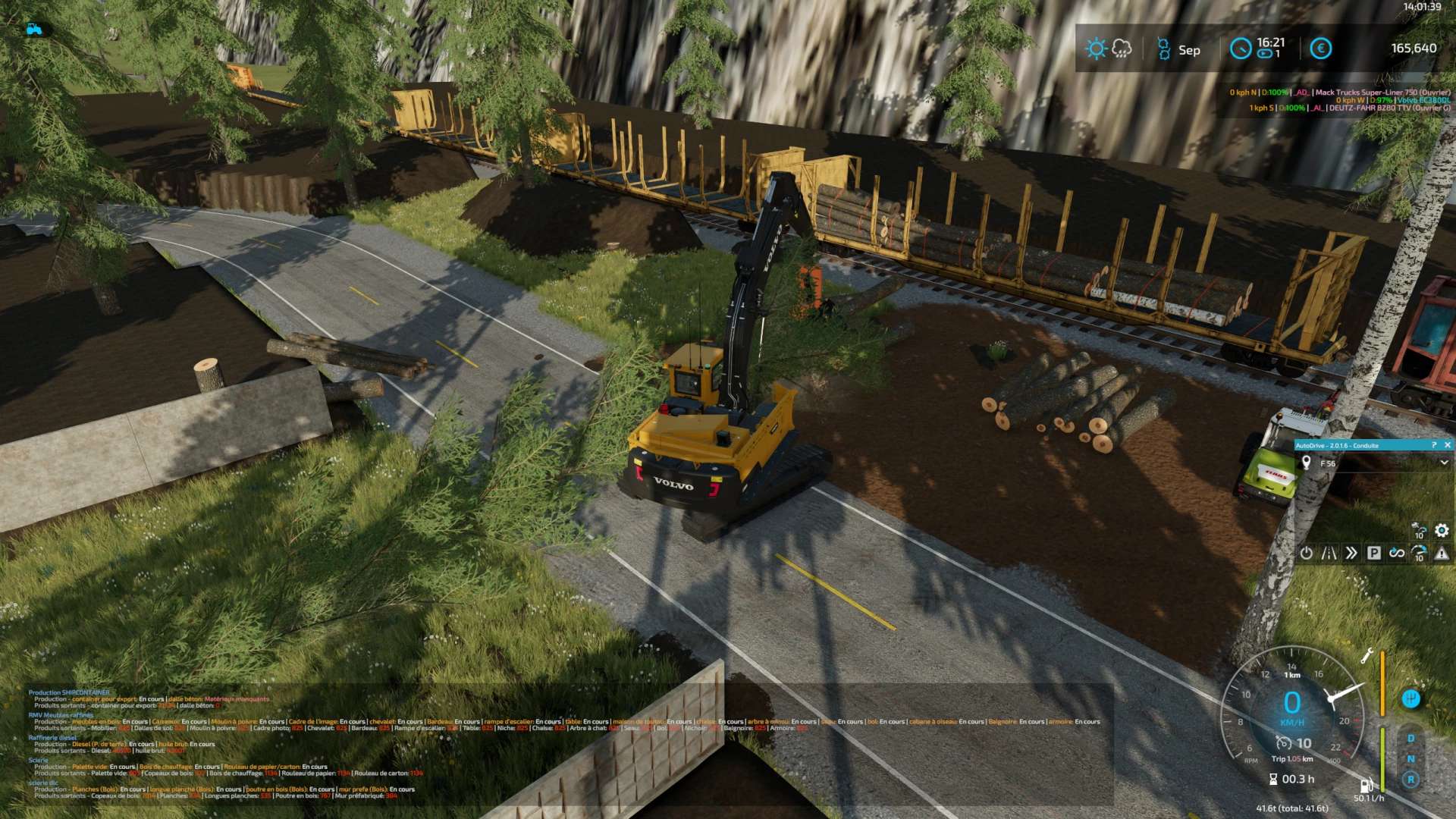 Concrete slabs and export container can be attached with a crane hook (Volvo DLC)