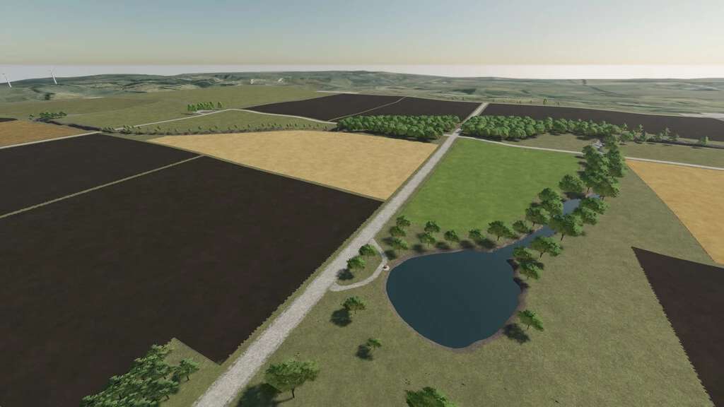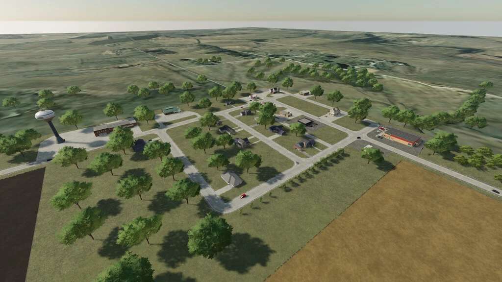 A Midwest map with the focus on farming. Larger fields, simple layout, made for large crop production.