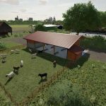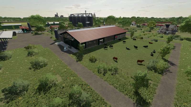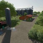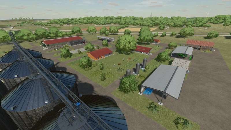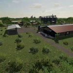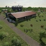 A new, large farm has been created, all types of animals are now present on the farm, as well as a few shelters, a driving silo and a straw/hay storage. At the start you own 2 fields, which are near the farm. The yard still offers enough space to use placeable objects. There is also a workshop already at the courtyard.
