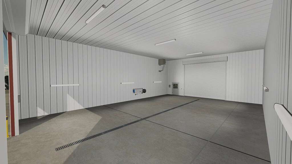Storage have fully lightning inside, automatic lights outside and pressure washer included.