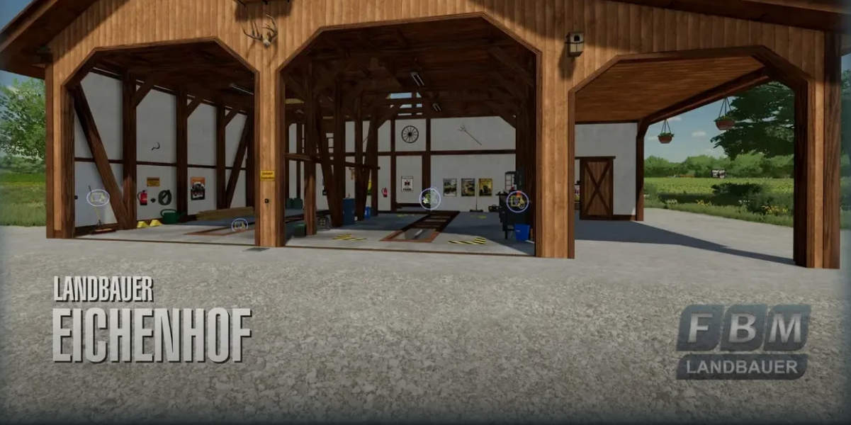 Welcome to the “Eichenhof”. This package includes four main buildings, the farm and guest house, a courtyard garage, the workshop barn and the farm’s own vehicle scales, 3 different types of silo and a number of decorative objects such as signs, trees, courtyard lamps and much more. Build your own “Eichenhof” from the more than 30 contents.