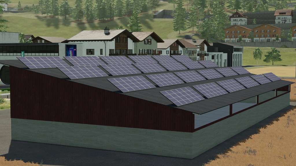 The mod includes a machine hall that has 24 solar panels on the roof.