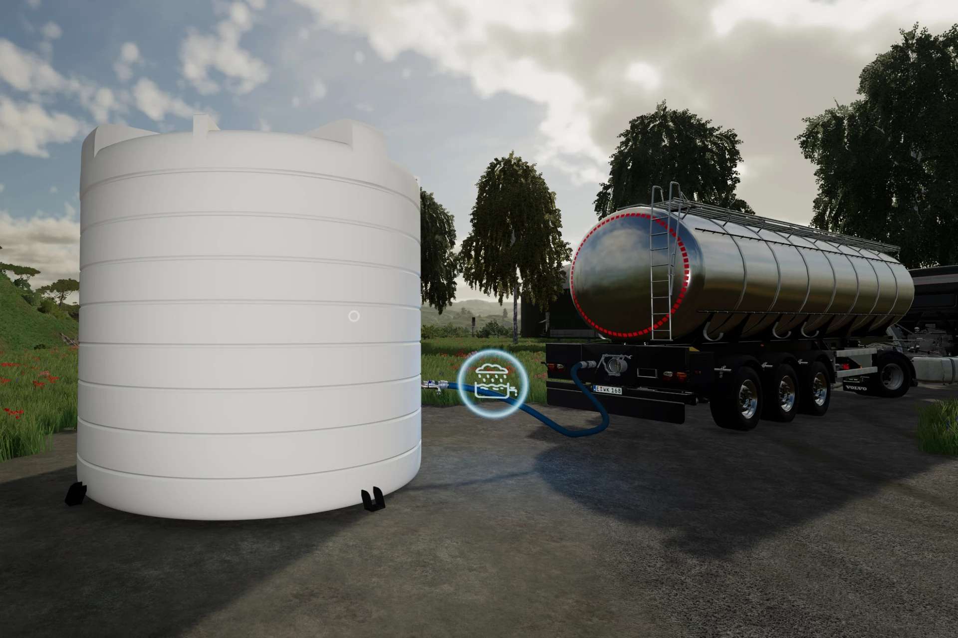 For those who play with the Manure System mod, this tank can be filled/emptied using a compatible trailer. Otherwise, the trigger for both filling/emptying is in front of the tap.