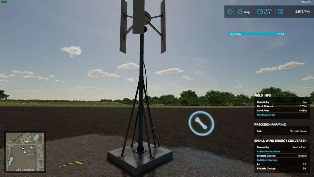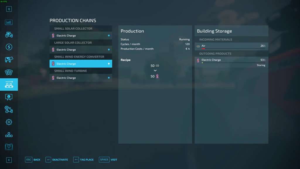 With this example mod and the stored script, the wind turbines and solar panels based on the Giants generators are linked to a production.