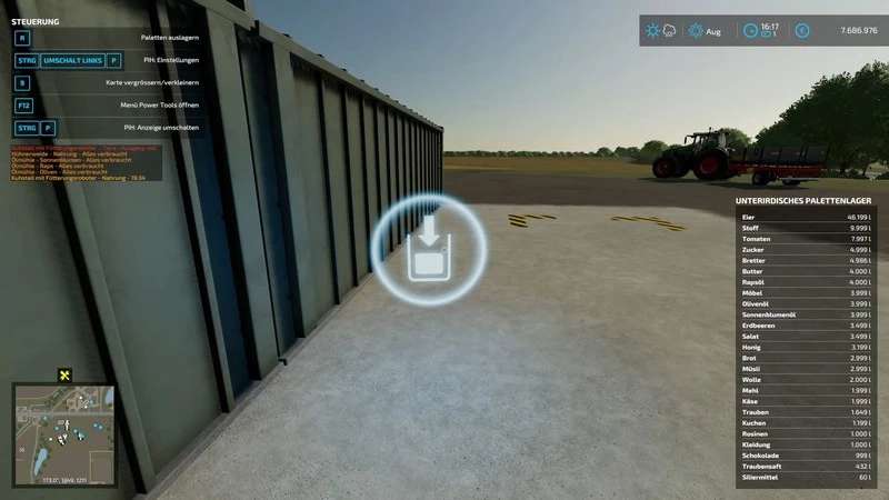 – Updated APalletSilo script (Version: 2.2.0.0). Contains new main.lua. Shows the selected filling type in further dialogs and the total capacity of the selected bales/pallets in the dialog)