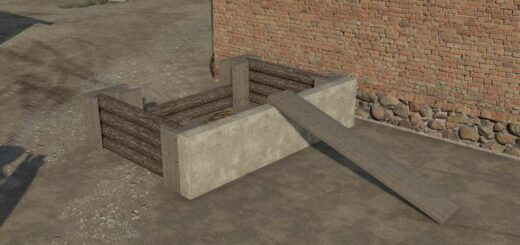 Wooden Barn in white, red, blue or brown color with sliding doors. The floor is standard asphalt but you can repaint it with the landscaping tool. Lights are automatic and it has snow on the roof.