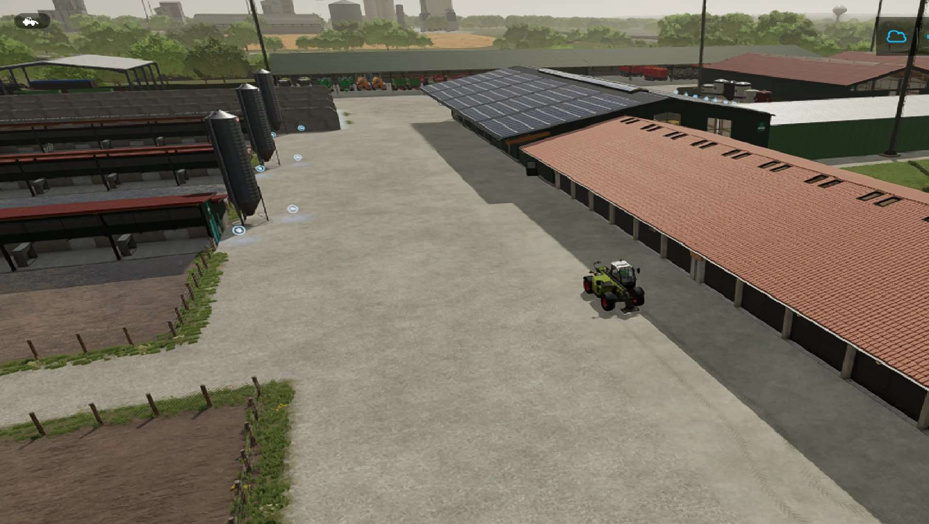 Almost everything you need for machines is set up in the huge sheds, but there are still empty spaces to give your own interpretation to my savegame.