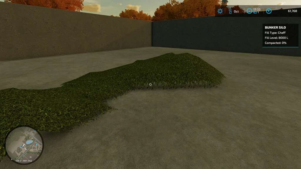 The Bunker Silo HUD Mod adds a small HUD, that will show when you enter a bunker silo. This HUD shows current information about the bunker silo (Filetype, Fill Level, Compacted/Fermenting).