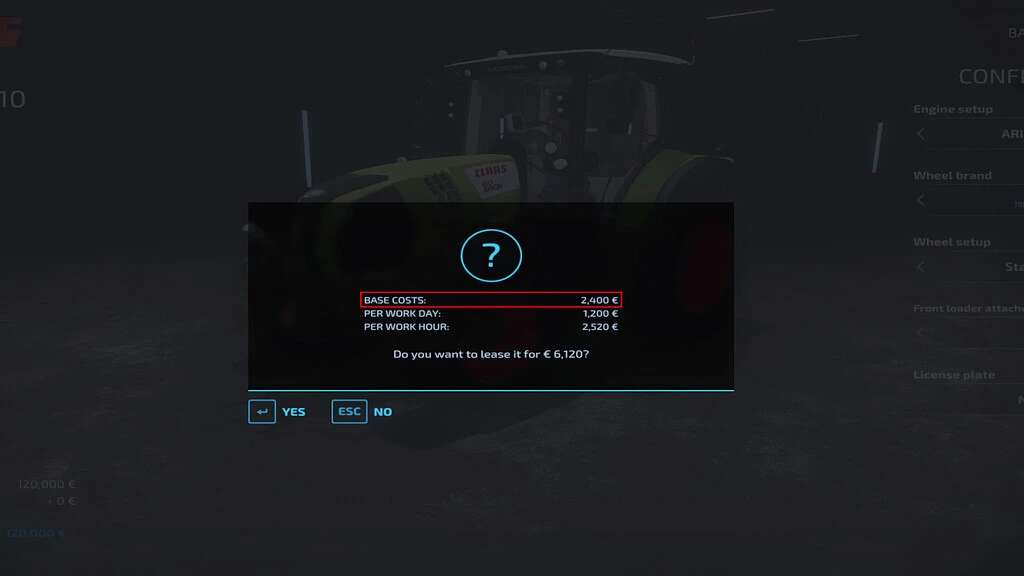 With this mod you have to pay the repair costs when you return the tractor or equipment. Additionally you’ve to pay washing costs, max 30% of the basic costs (deposit), for a dirty tractor or equipment.