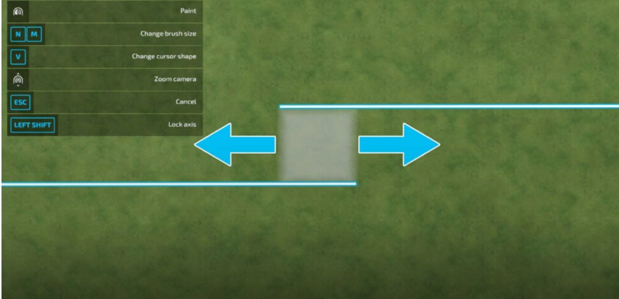 This mod allows players to lock the axis when painting, enabling the creation of perfect straight edges. To use this feature, press and hold the left SHIFT key and move the mouse in the desired direction. After moving 0.25 meters, the axis (X or Z) will be selected automatically based on the mouse movement. The mod will then restrict movement to the selected axis until you release the SHIFT key.