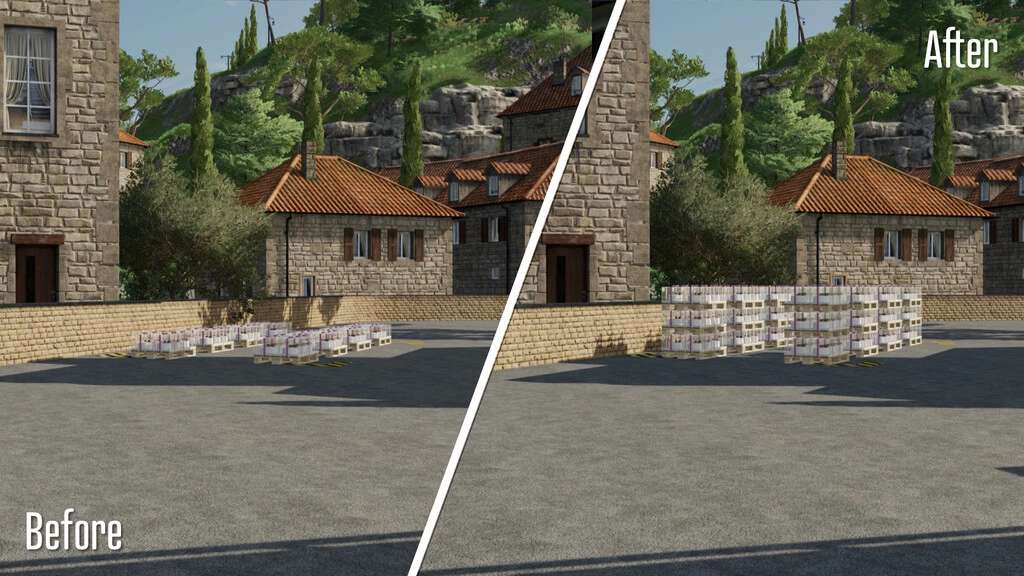 – This mod will update all pallets to spawn stacked, up to 2m. This will cause some pallets (ie: Wool) to spawn 2 high, and others (ie: Oils) to spawn up to 5 high!