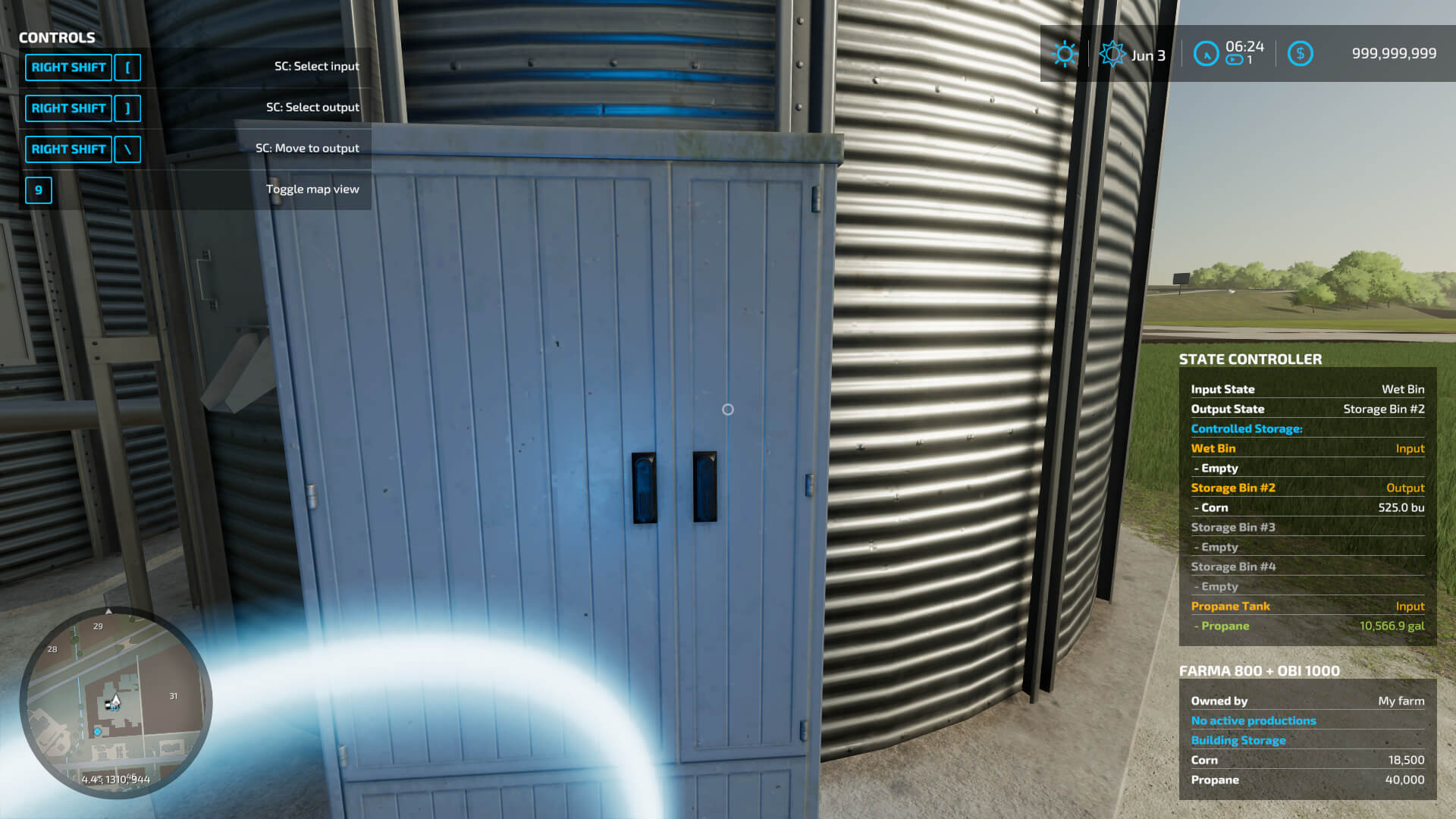 Most things can be done inside the vanilla productions menu. The rest is controlled from the placeable i3d embedded control trigger. This trigger is the same as a player trigger for a production placeable. Standing in the trigger will bring up the controls and show extended information in the player hud box.