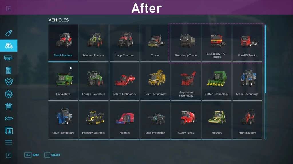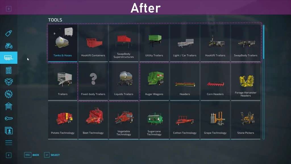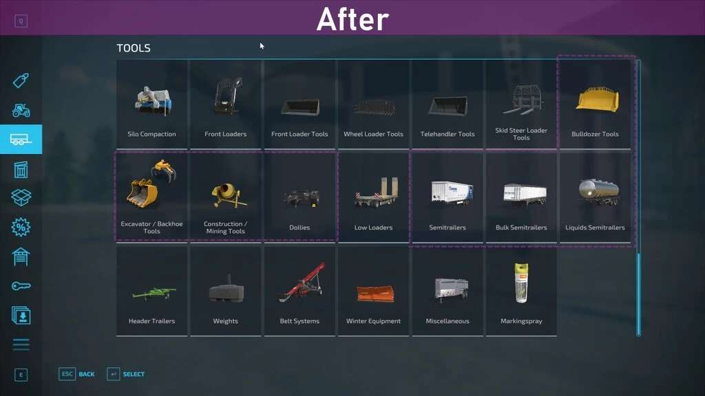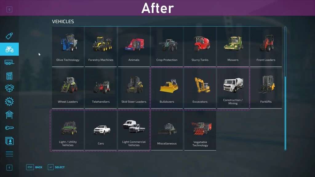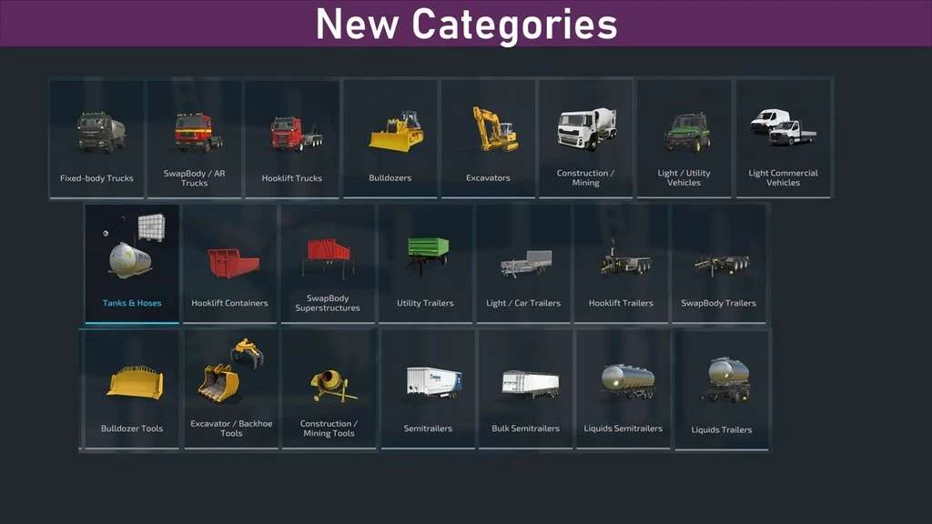 – Adds additional categories for specialized equipment and buildings such as utility vehicles, excavators, snow removal, factories, bale storage etc