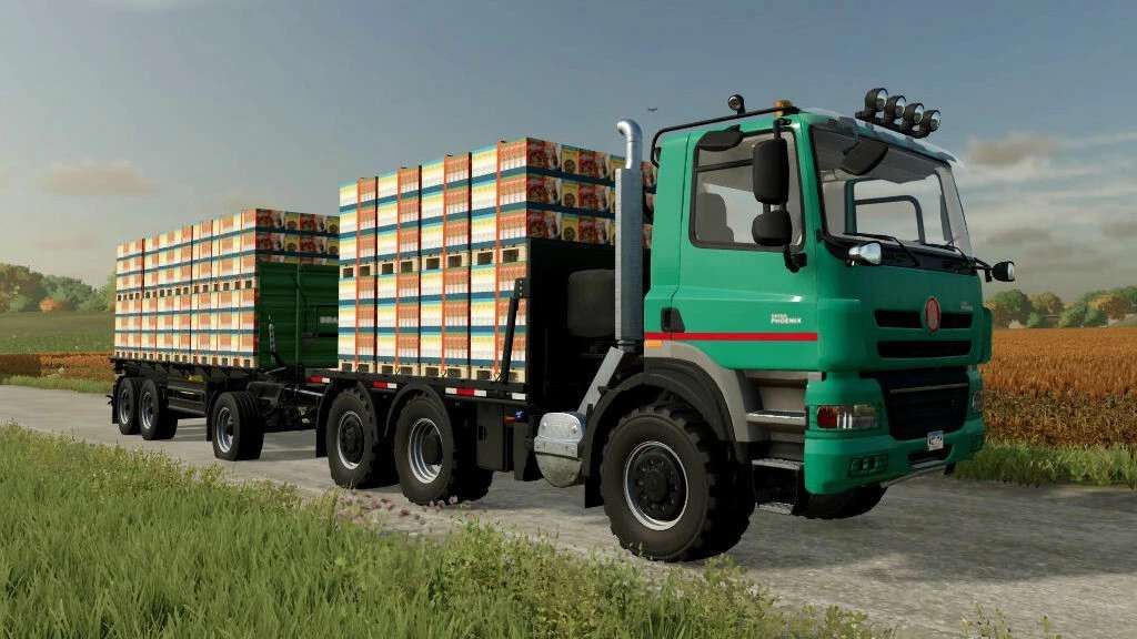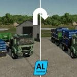 Tatra Phoenix 6×6 Agro-Truck is a six-wheel-drive truck and MAN TGS18500 is a four-wheel-drive truck, both should be able to get you anywhere on your farm. Both trucks have a truck bed added to carry multiple pallets. The Brantner DD24073 trailer is also included in the mod.