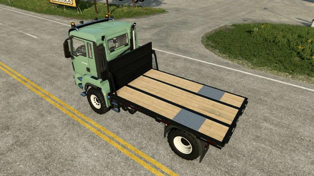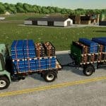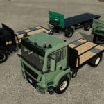 This mod includes two all-wheel-drive trucks with truck beds added to carry pallets. Both have support for Pallet Autoload by Achimobil. The mod also includes a trailer with support for Pallet Autoload.