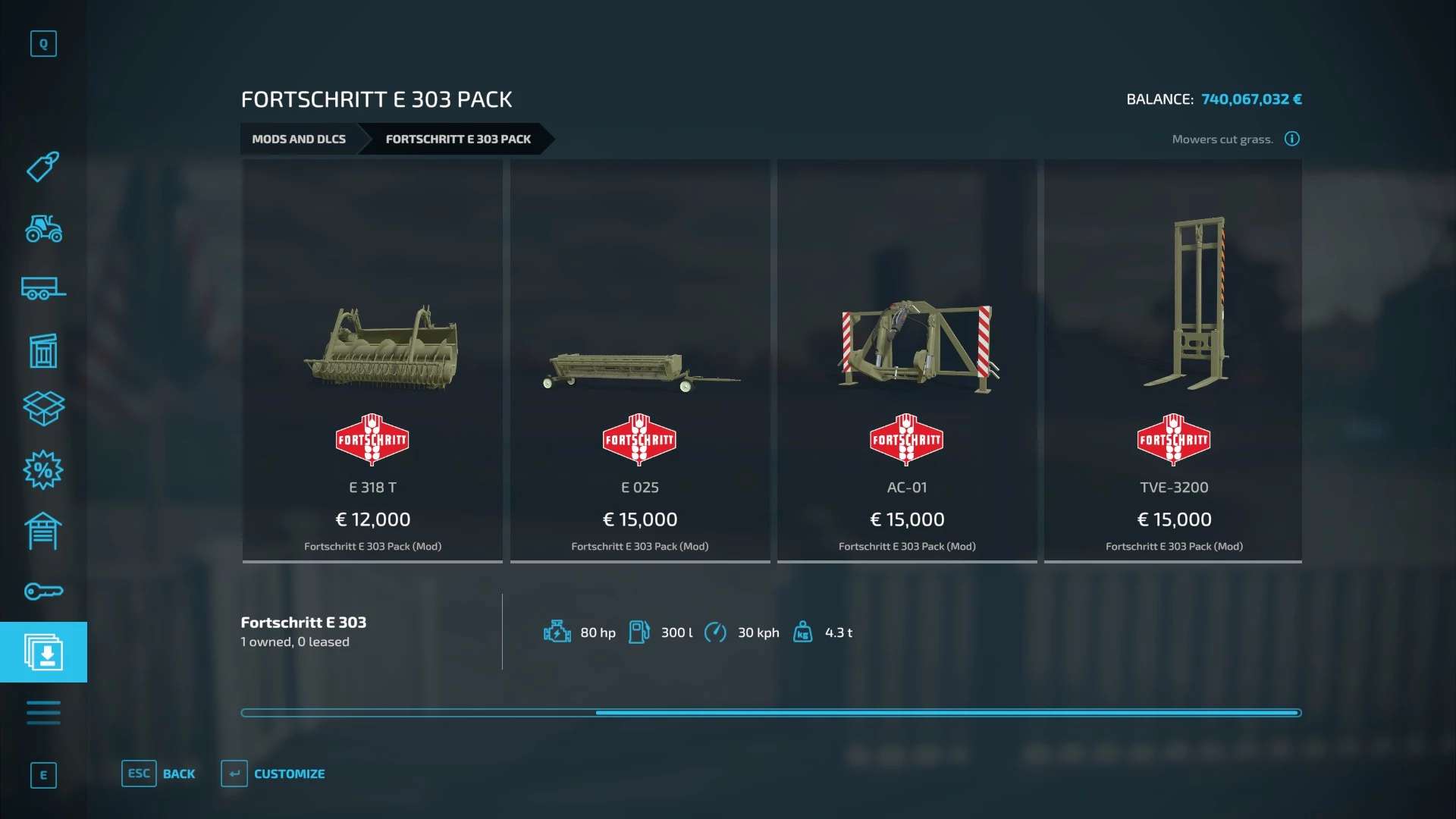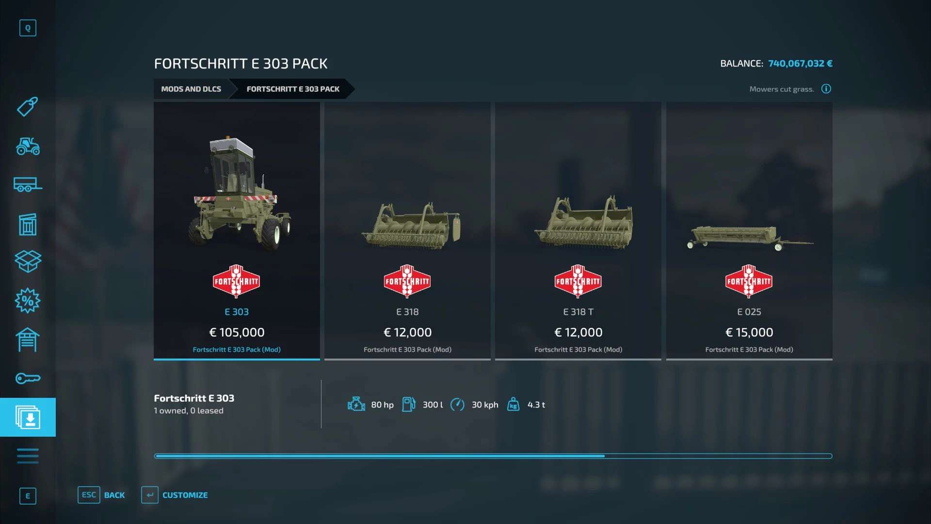 Finding a game interesting after investing 300 hours into it can become a bit challenging. But with mods as long as there is a new update is assured, you are guaranteed a few more hours of new exciting gameplay. FS 22 Packs Mods are one of the greatest upgrades and can make your game unique. Downloading and adding FS22 Fortschritt E303 Pack v1.0 Mod to your game is not difficult at all - you simply need to save a file and run it.