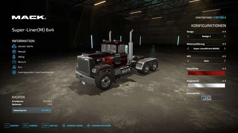 – Big Bud 747 with designs, plus color choice, flashing lights off/on, license plate light and much more.