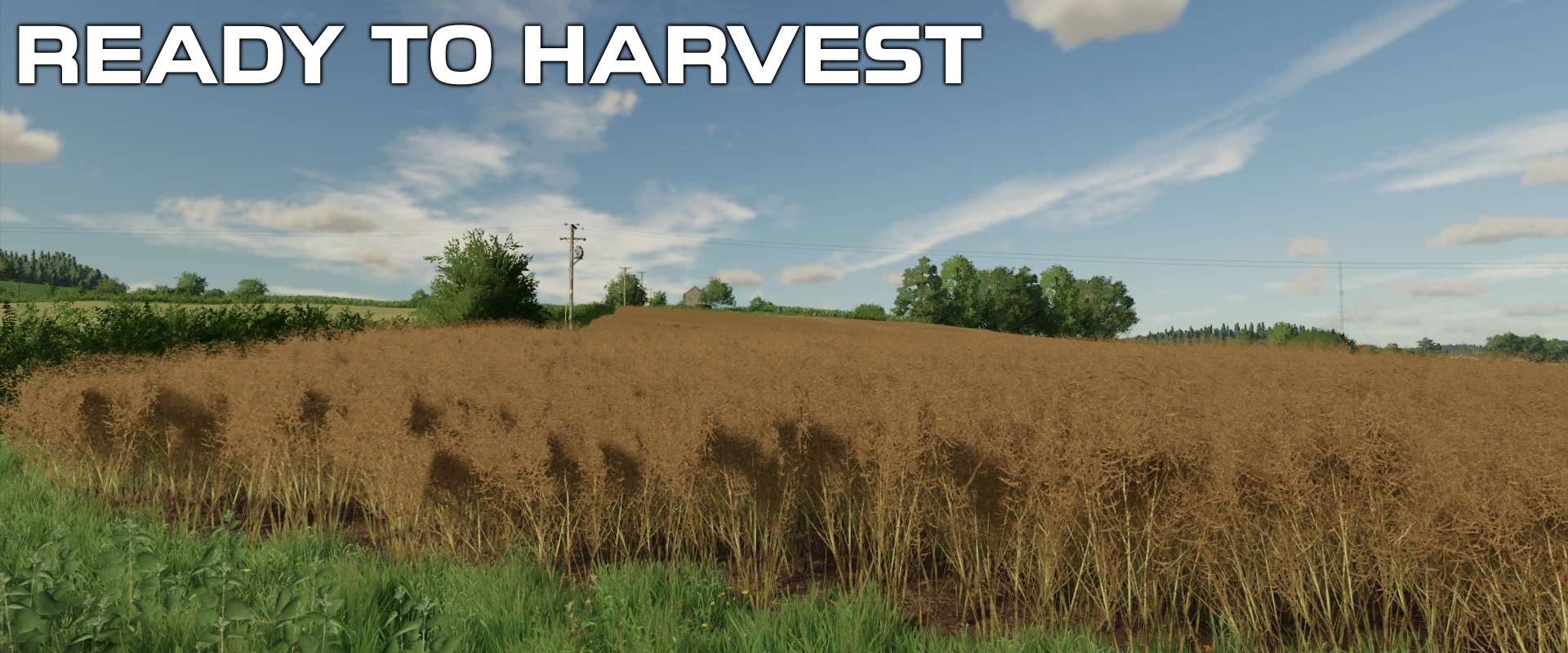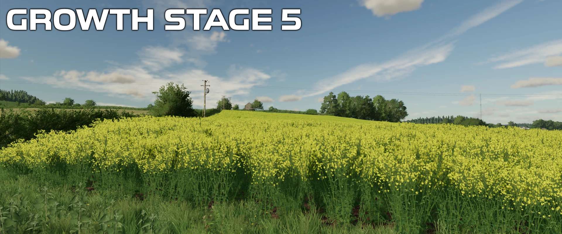 The entire crop foliage has been re-coded and along with the new textures brings the crop far closer to real life OSR/Canola. The distance textures have all been edited so the detail to LOD to distance textures blend as seamlessly as possible.