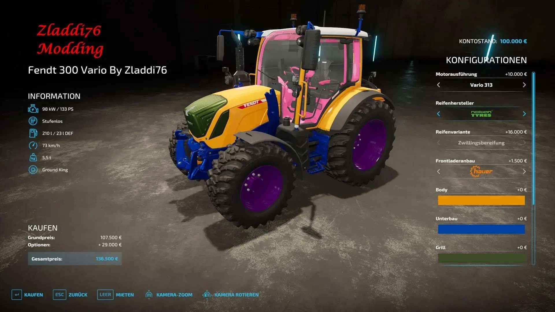 The Fendt 300 Vario in Farming Simulator 22 has been enhanced with multicolor options, Nokian double tires, and increased horsepower, giving you more power and flexibility in your farming tasks. The tractor also boasts an increased top speed, allowing you to move quickly around the farm. Additionally, with an extended repair interval, you’ll spend less time on maintenance and more time working in the field. This upgraded Fendt 300 Vario is perfect for those looking for a reliable, high-performance tractor with customizable options to suit your needs.
