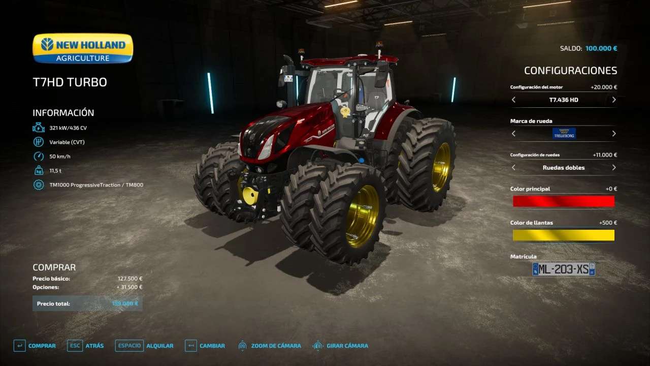 Hello guys, today I come to bring a new tractor, a New Holland T7 HD, it is my own modification, selectable colors, it has a built-in spot red with which you can guide yourself to attach your rear implements, it has an engine modification with real open sound pipe, optional power configuration, and most importantly, it has an integrated screen with the real-time map, for which you will need the REAL GPS MOD. The latter is optional, you can use it without it, but it is totally recommended to enjoy it 100%, I hope you like it.