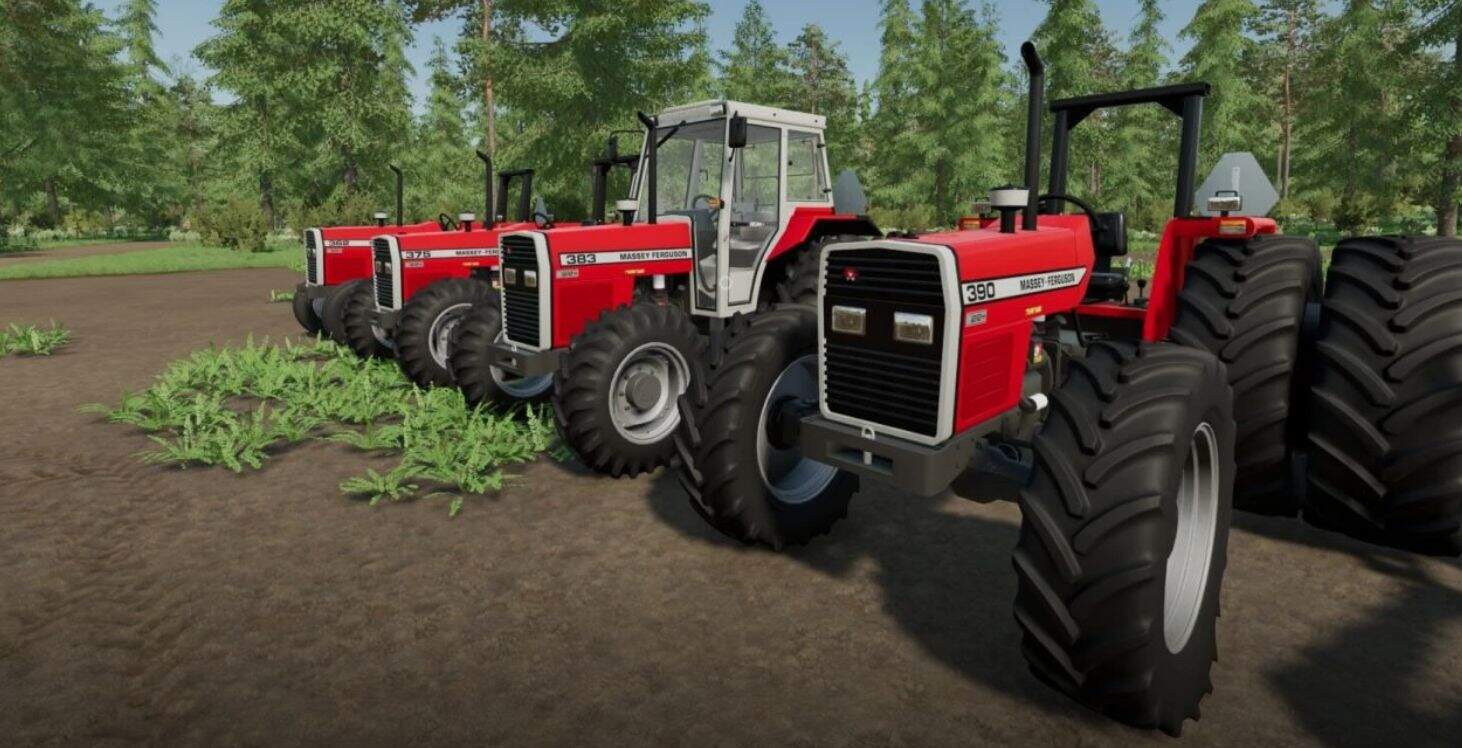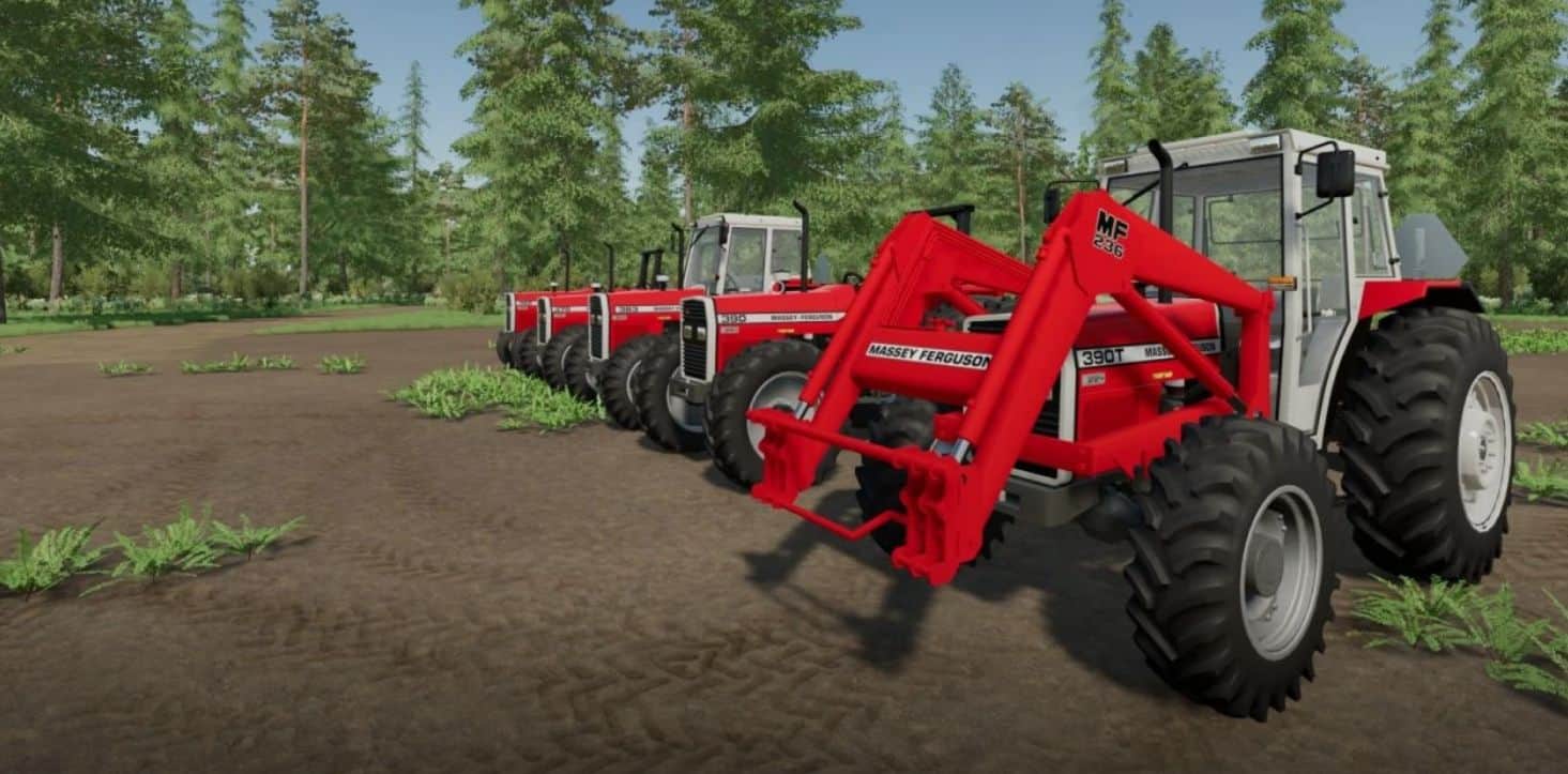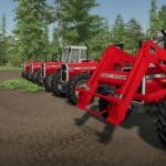 This is an edited and improved version of the already existing converted 300 series Massey Ferguson Tractors, more notabley the 362-390T models, better resembling how these tractors looked in the US and Canada. Tires are Goodyear Dynatorque IIs which were factory tires for the North American Tractors. Duals have been left as is. Rims are now proper, including a more accurate rear wheel weight option, and a good amount of interior animations have been restored. 383 Model has been restored as well. Given that there is already a good edit of the 398-399s in this website, I did not do much to them here, as the focus went to the smaller tractors, however the rims and tires are more accurate but not the right size on the 399. I may fix the 398-99 up at a later date. Also included is a reworked IH mount o matic loader to resemble the MF loaders that were sold on these tractors in NA which are of a very similar design. I specifically set it up to fit these tractors so not sure how it would look on other tractors. This is my first time modding/editing so please excuse any imperfections or errors, as this is a learning curve.