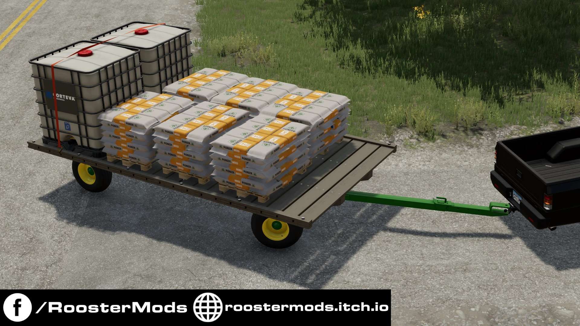When I was growing up, I would stand on the hayrack behind a baler and manually pull bales off the chute as they came out and stacked them. I’ve wanted to do hay this way in Farming Simulator ever since I started playing, and I’ve finally made it a reality. Here’s a hay rack built to scale, using real-world methods. It has autoloading for small squares but has tie-down options so that you can use it to haul around bales, seed, fertilizer, logs, or even small equipment.