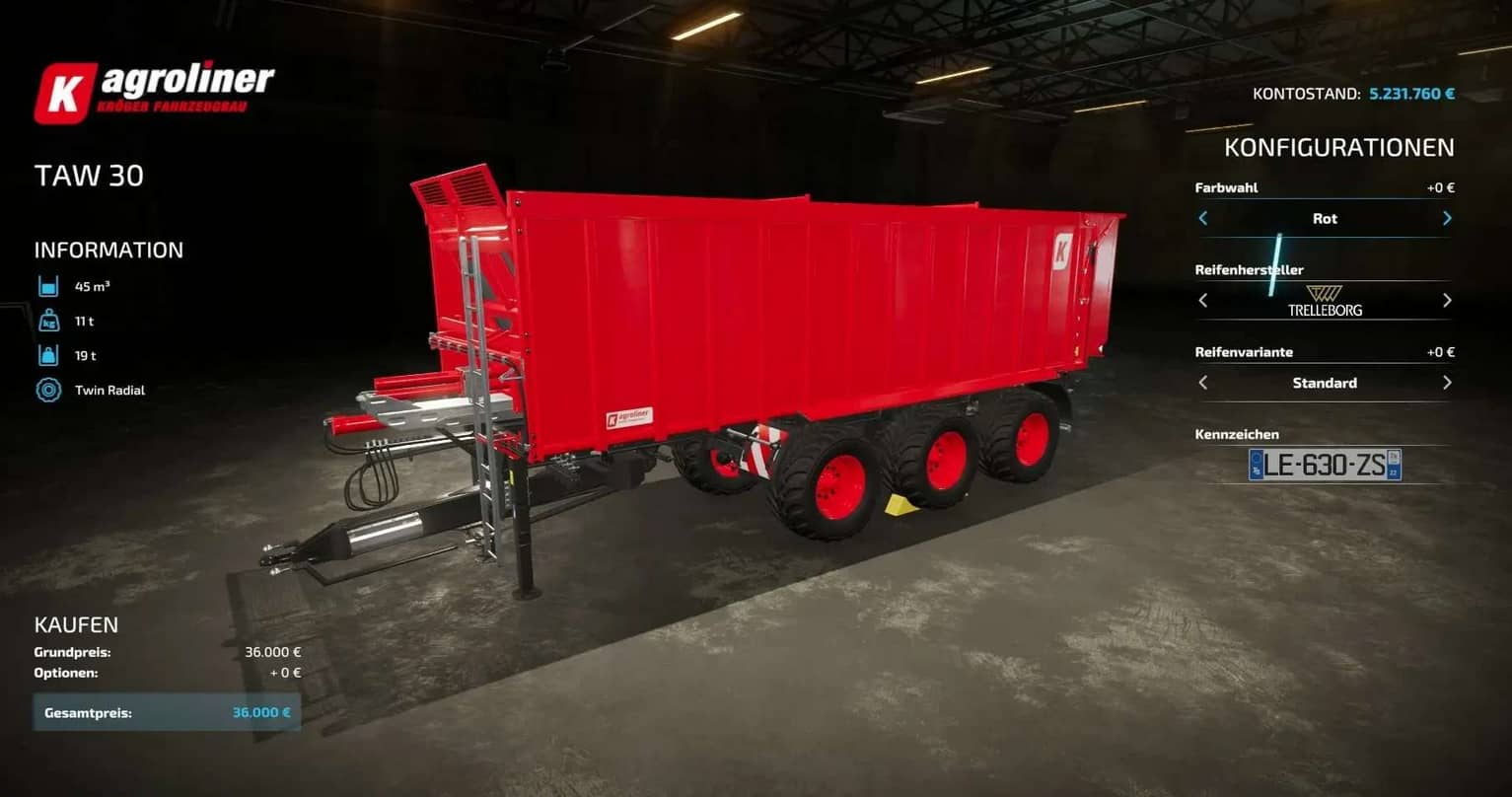 Finding a game interesting after investing 300 hours into it can become a bit challenging. But with mods as long as there is a new update is assured, you are guaranteed a few more hours of new exciting gameplay. FS 22 Trailers Mods are one of the greatest upgrades and can make your game unique. Downloading and adding FS22 Kroeger Agroliner TAW 30 v1.0 Mod to your game is not difficult at all - you simply need to save a file and run it.