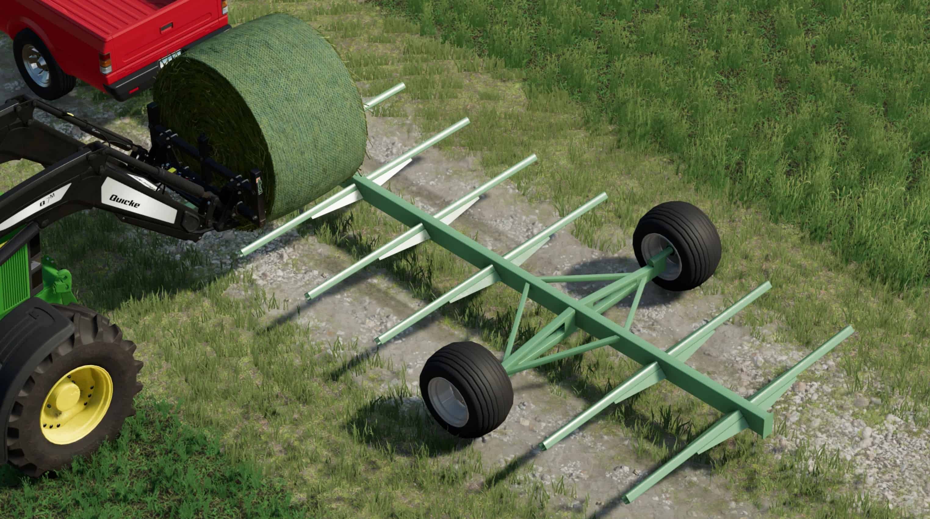 Mac-Lander is a small trailer company from Osceola, Iowa. They’ve been around for a few decades, and in that time they at one point made round bale trailers. They are made of simple construction, square steel tubes welded to a frame with two wheeIs and a jackstand. had the pleasure of finding one of these bale trailers in person. I took reference pictures, measurements, notes, and accurately re-created it for your use in Farming Simulator 22.