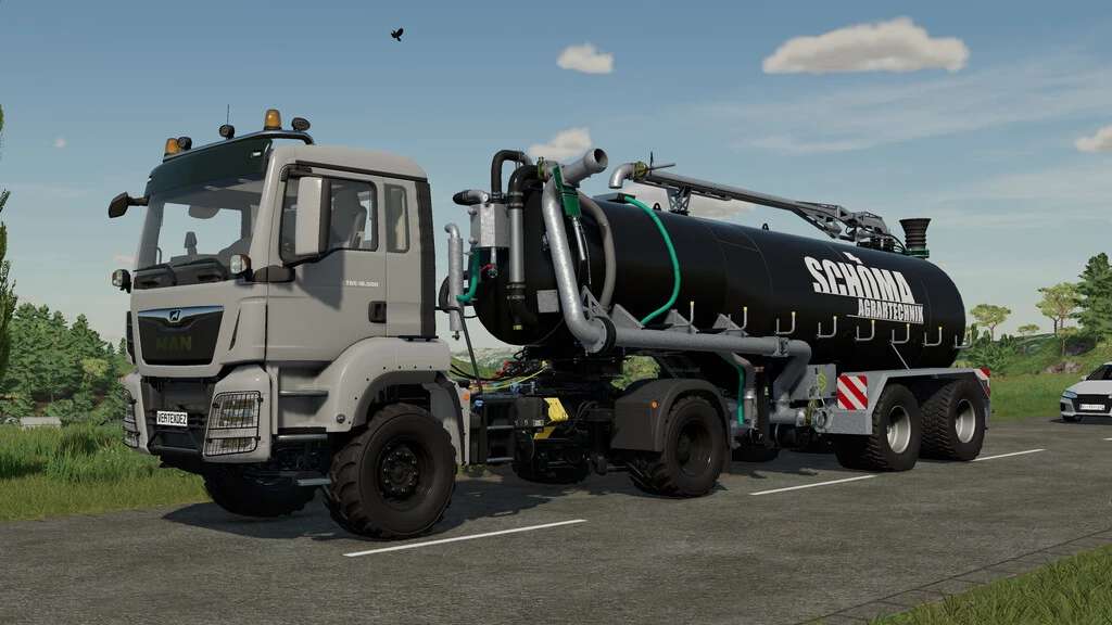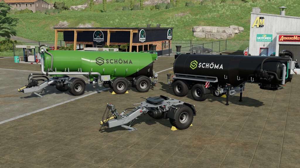 This pack contains machines around a massive slurrytanker from the company Schöma from northern Germany. Due to the tapered tank, a very low center of gravity and a super road holding can be realized.