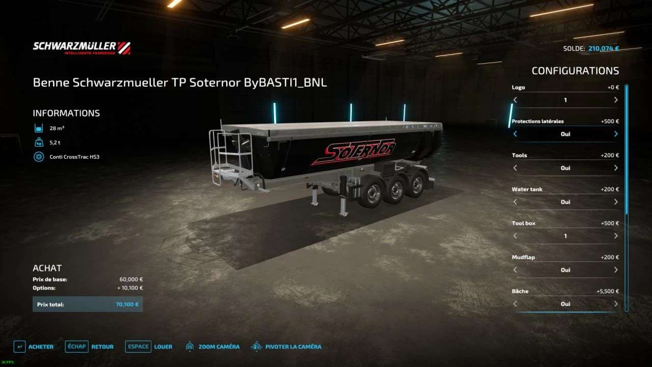I am posting to you today an edition of a multi-crop skip which came out at the very beginning of FS22, I readapted it for a local public works company in my region. This mod has many configurations that you can choose in the shop and customize it as you wish according to your tastes, but here is some information on it:
