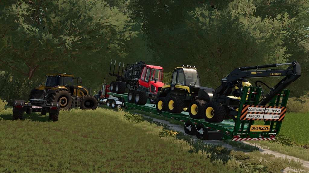 The Trailers Have an improved Physics system, so the objects being transported do not slide during transport, in addition to having Extensions to make the trailer even wider for larger equipment. It is developed for transporting harvesters, with a support for coupling cutter bars, so you don’t need another trailer to transport your harvester.