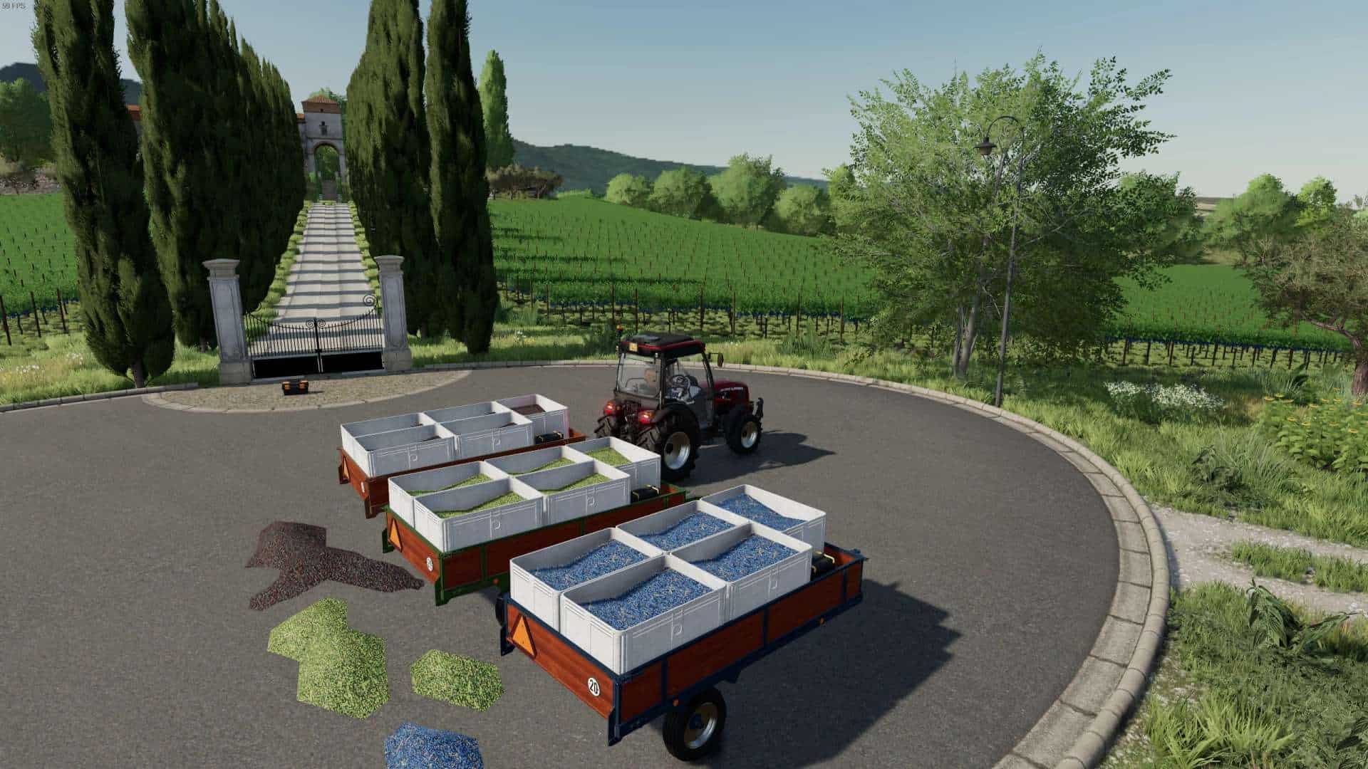 New in version 1.1.0.0., Added cover, wheel variants, minor corrections, support for harvesting olives and white grapes (White grapes only on the ITALIA Emilia map). Unfortunately, a separate trailer is needed for each crop. You can find these in the relevant category of grape and olive harvesters.