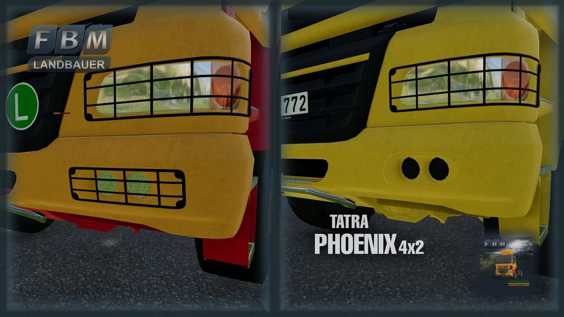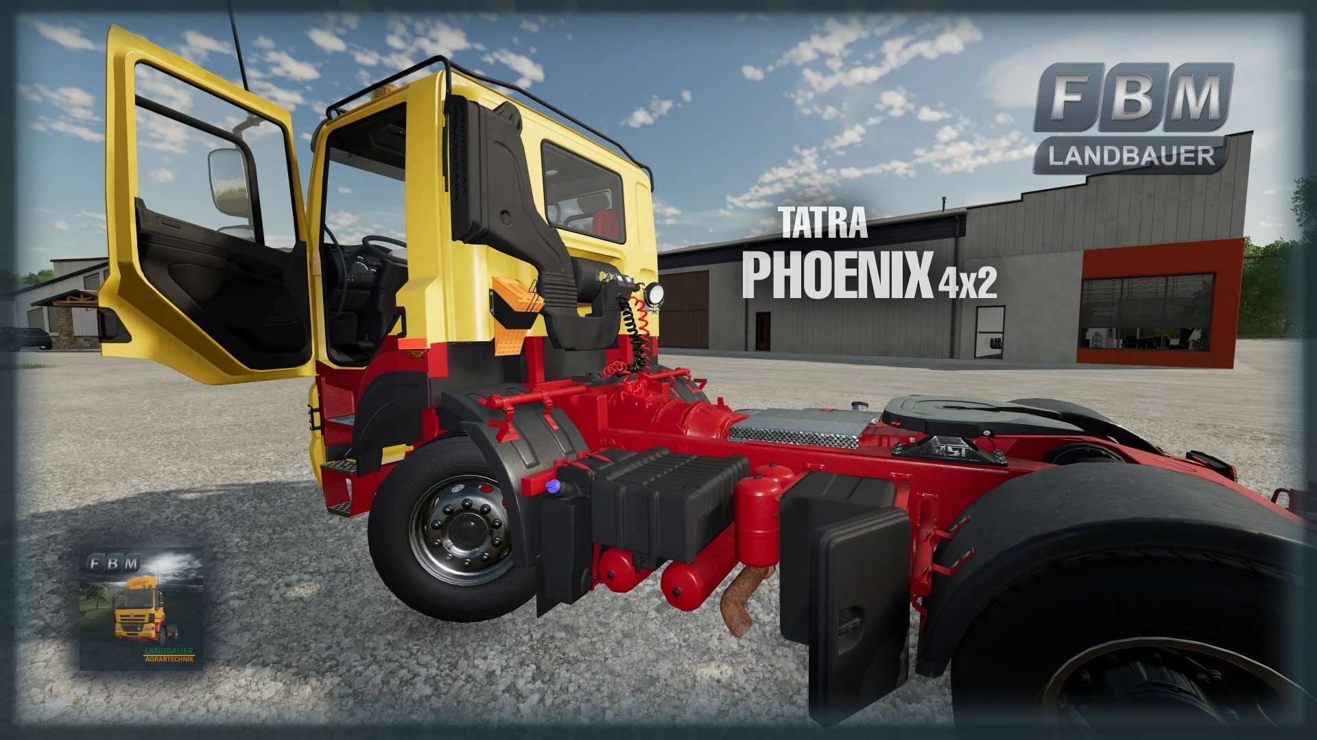 Tatra Phoenix 4×2 tractor unit with 360 HP from the Landbauer Edition series. The doors, windows, sun visors, lights, etc. can be controlled via SimpleIC. The truck configuration includes some additional elements such as wind deflectors on the roof or a pirate parrot on the dashboard. Choice of tires and colors, choice of tail lights, etc.