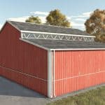 Basic wooden garage in red color where you can store machines or crops.