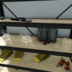 In addition to providing space for machinery storage, the shed also includes 2 bulk storage bunkers, a charging station for electric vehicles (battery charger), a workshop, and storage for 2 chainsaws and 3 spray cans.”