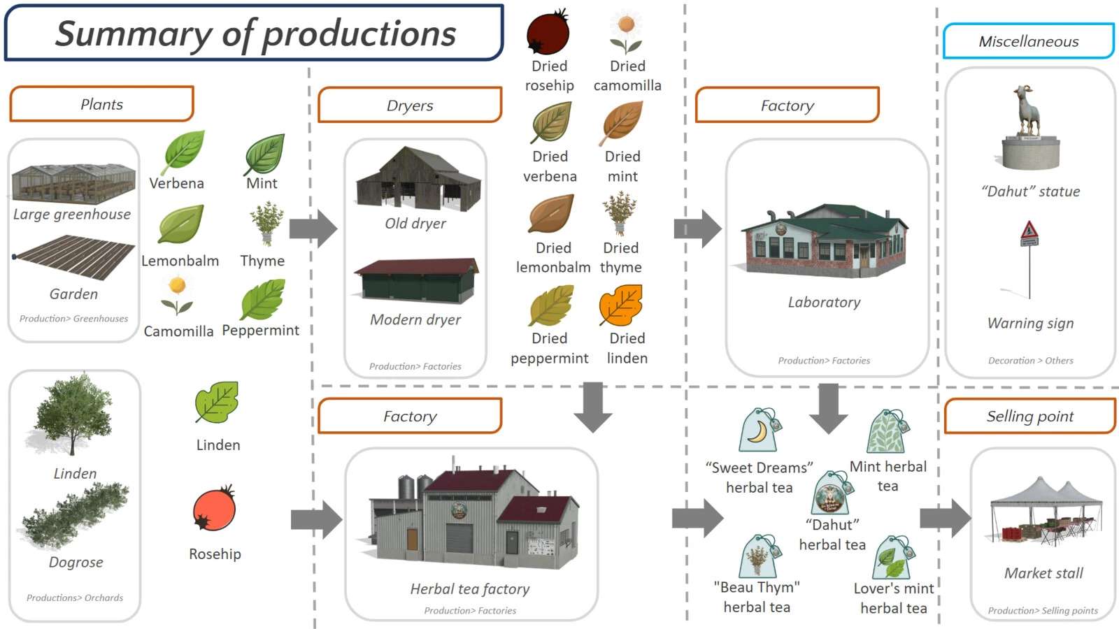 Finding a game interesting after investing 300 hours into it can become a bit challenging. But with mods as long as there is a new update is assured, you are guaranteed a few more hours of new exciting gameplay. FS 25 Buildings Mods are one of the greatest upgrades and can make your game unique. Downloading and adding FS25 Dahut’s Herbal Tea v1.1 Mod to your game is not difficult at all - you simply need to save a file and run it.