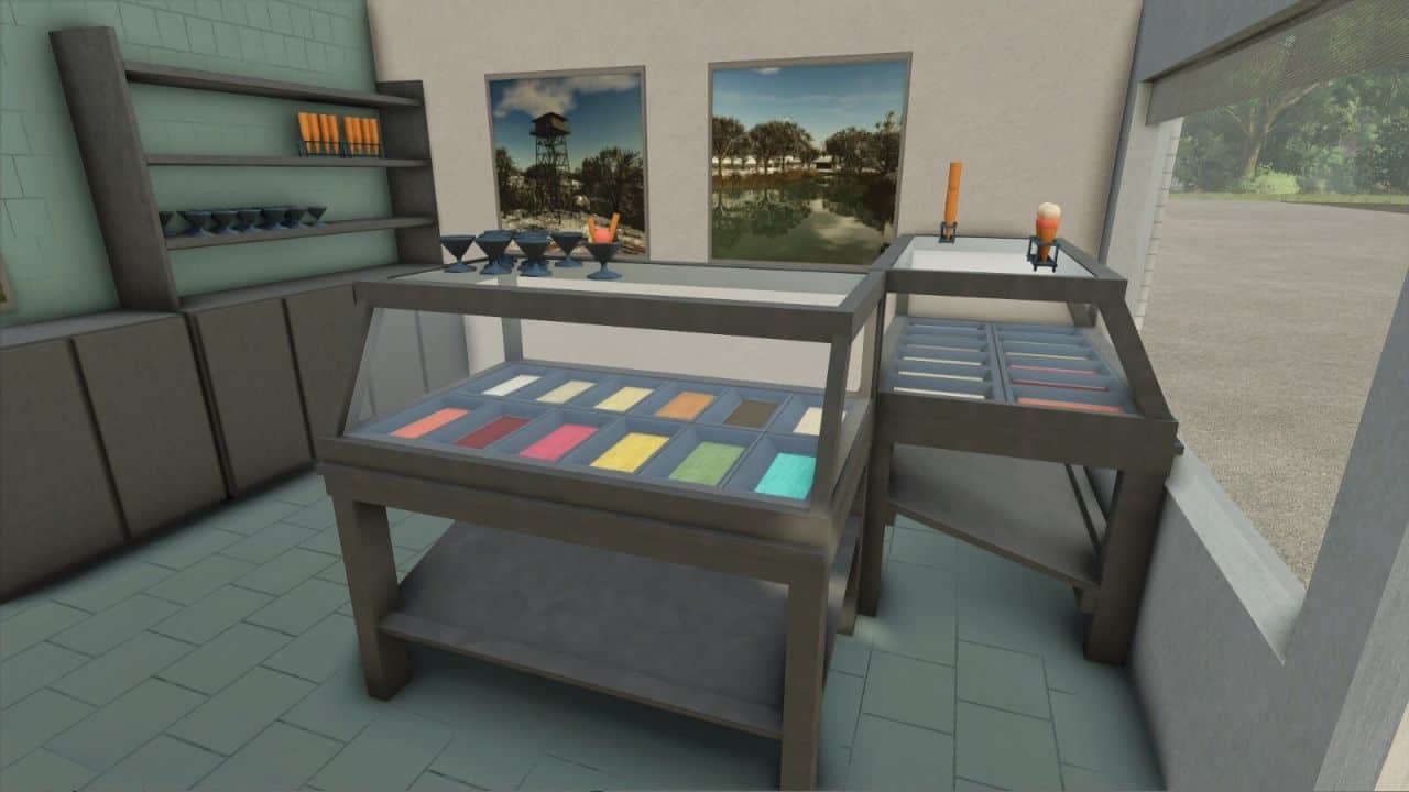 In this walk-through dairy, you can produce not only the standard dairy products from the base game, but also three different types of yogurt and four flavors of ice cream.