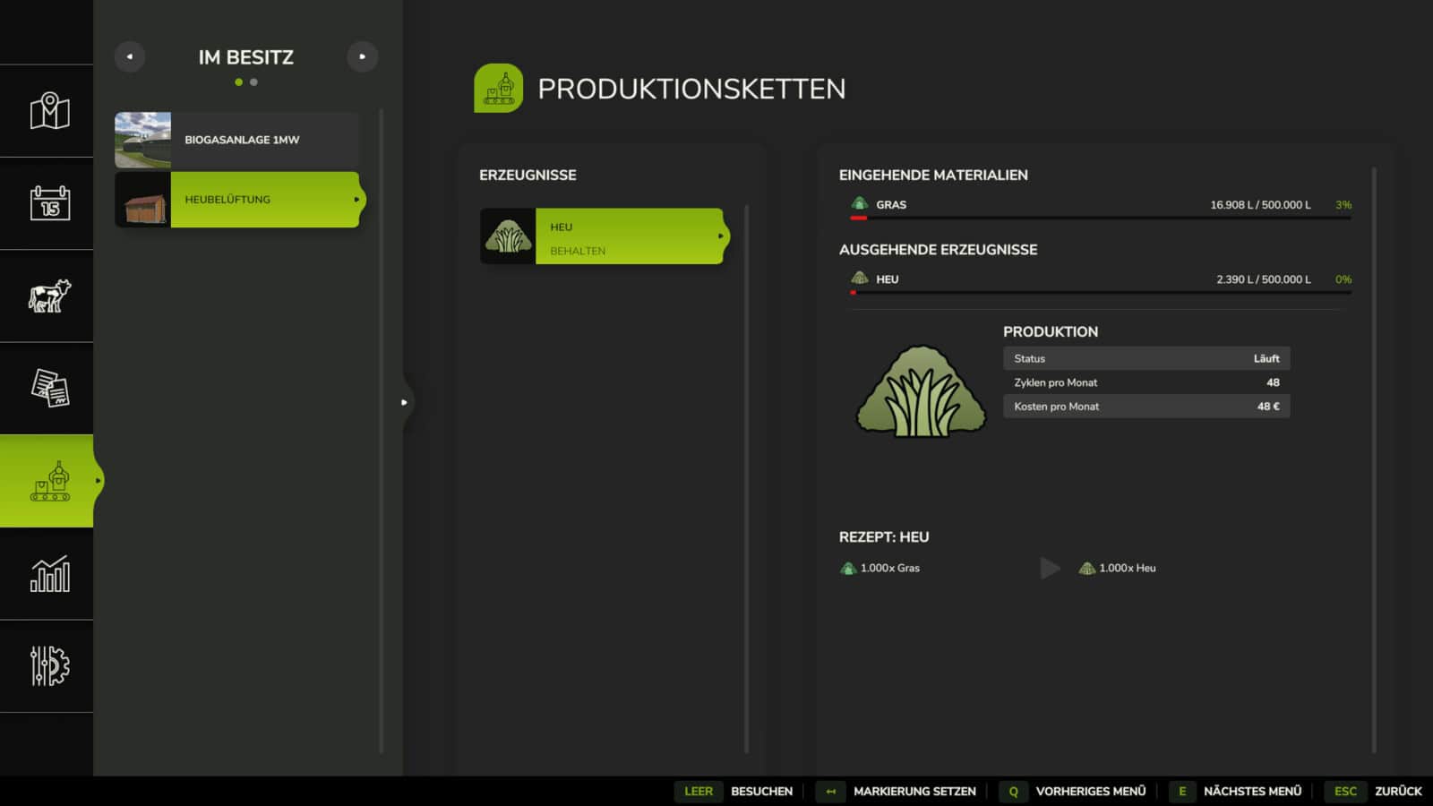 Then put the hay ventilation or the hay storage on your farm! The buildings accepts both bulk and bales, and the output is in bulk only.