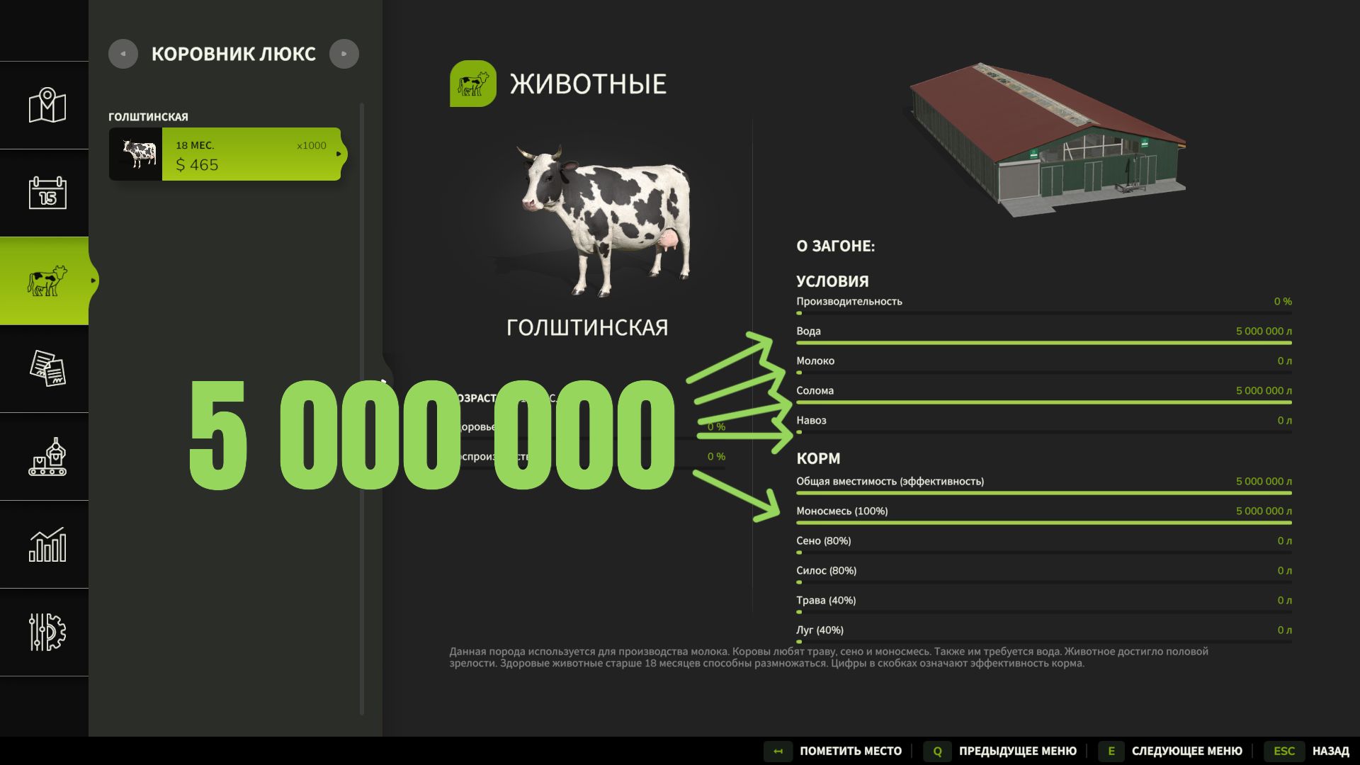 – The cost of a cowshed in the game is 1,000,000 euros.