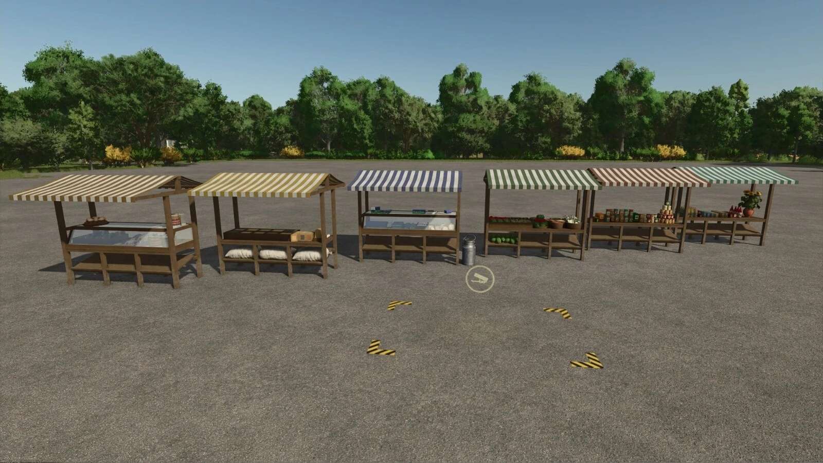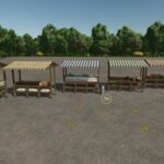 You can choose between a marketplace with multiple stalls, a single market stall with a complete range of products, and individual market stalls as decorative objects that you can combine as desired.