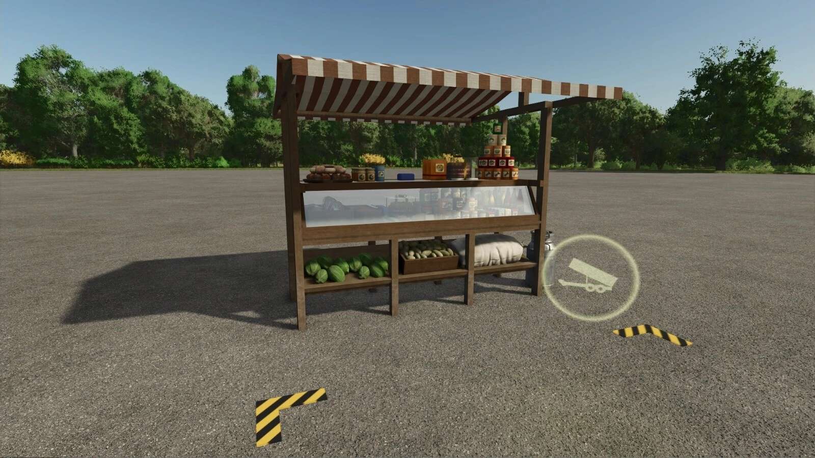 There is also a simple selling unloading point that allows you to transform the decorative market stalls into a functioning market.