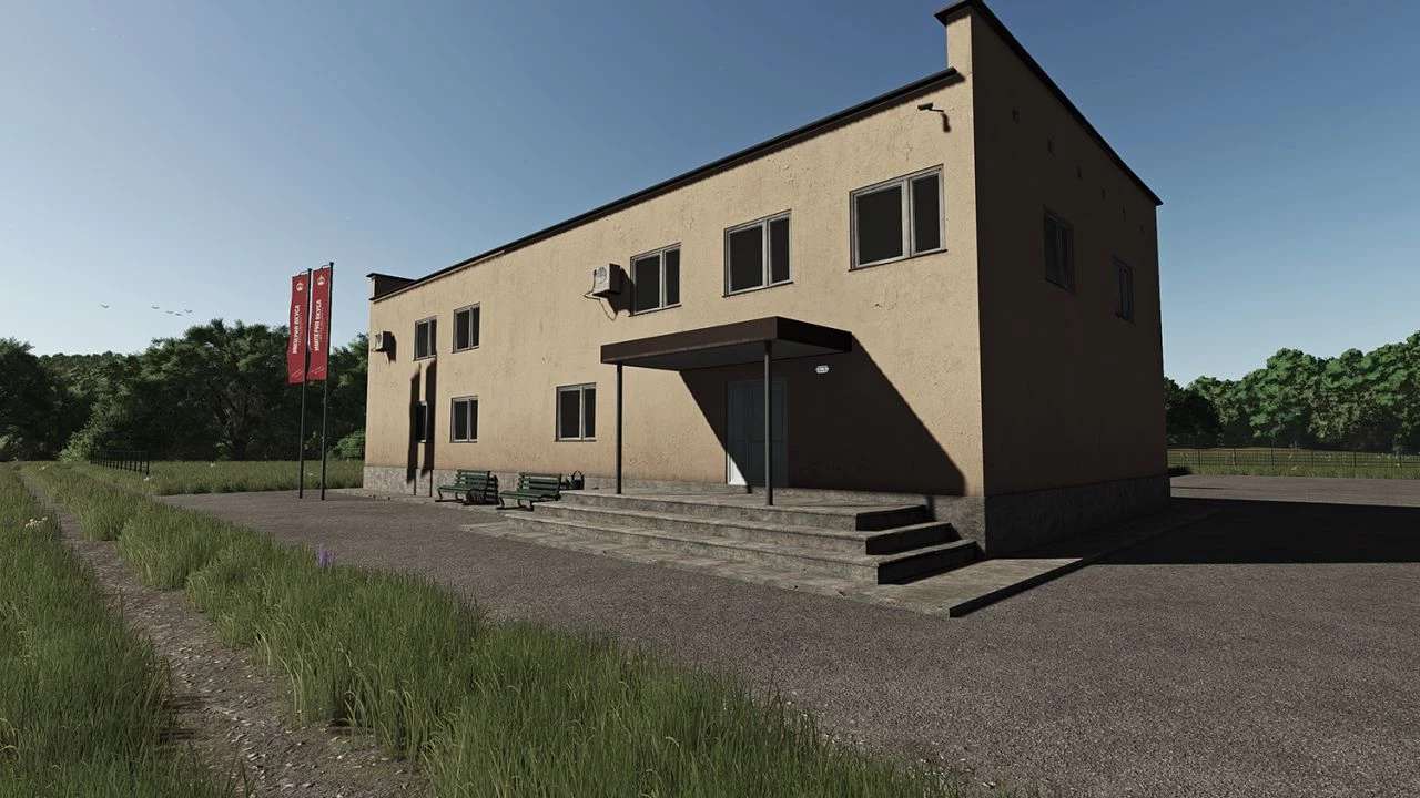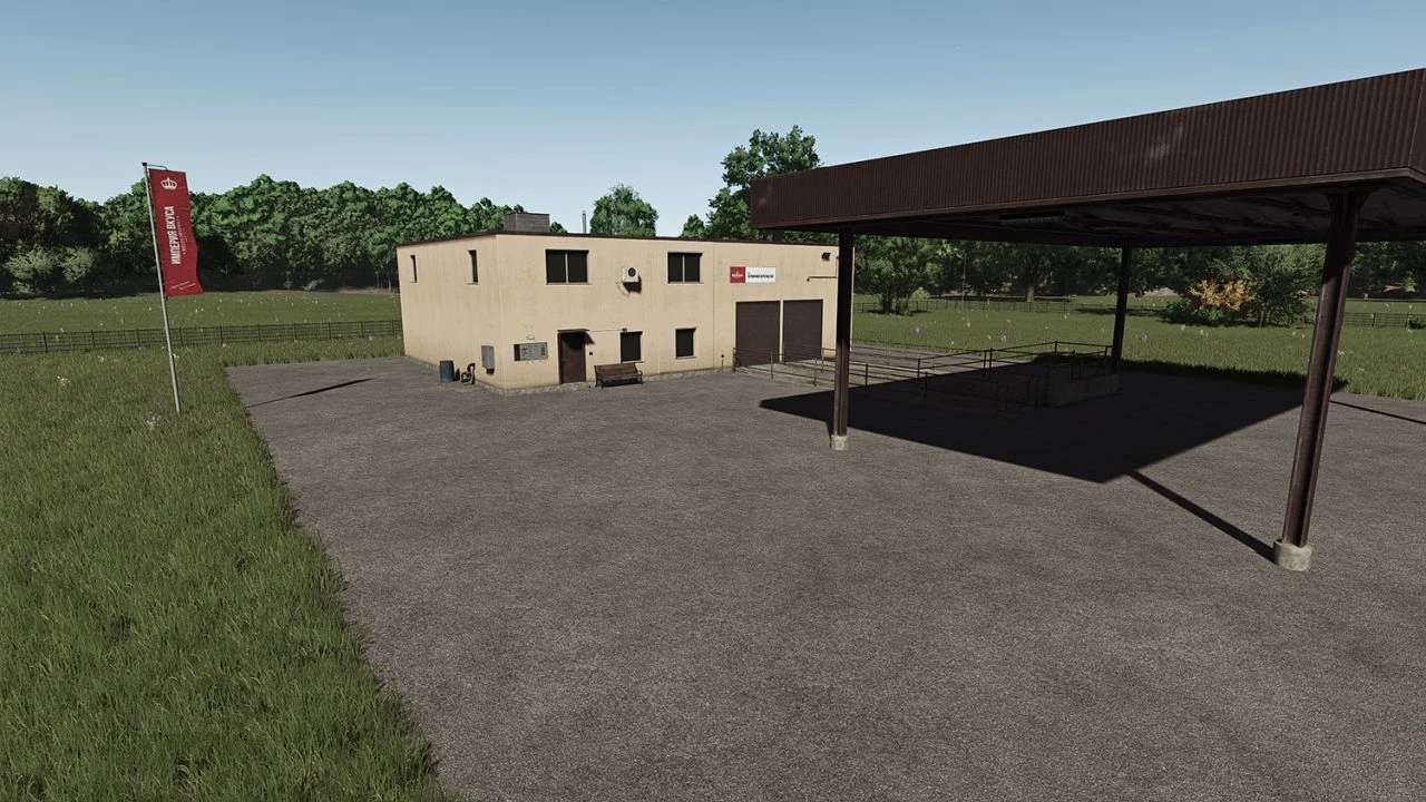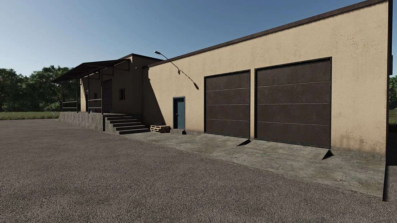 The meat processing plant contains five workshops, each of which produces various products. The buildings are made in the same style and color scheme. You can sell finished products in a company store, which was also developed for this mod. Brand your buildings with the help of advertising signs and a banner.