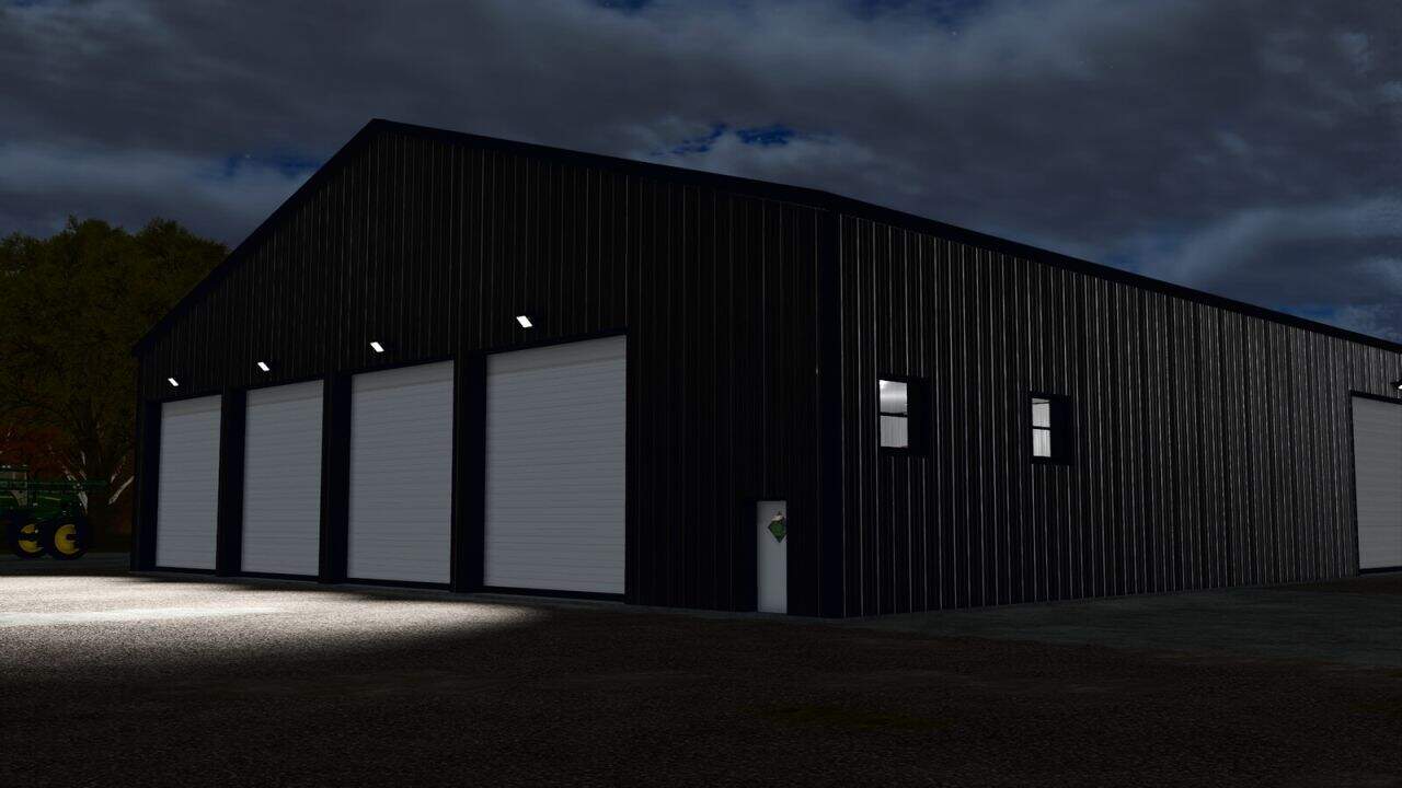 Metal Storage with 5 roller doors and 2 man doors. Building has lighting inside and automatic outside. Inside building You can storage crops, machines, pallets on shelves and repair/repaint/customize or sell vehicles.