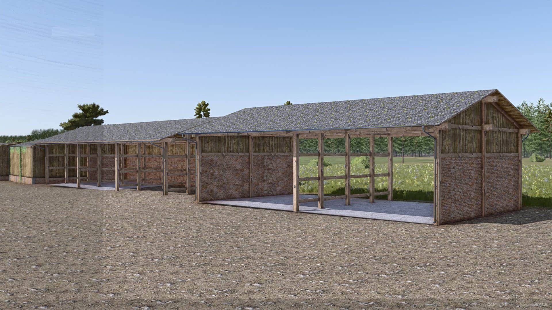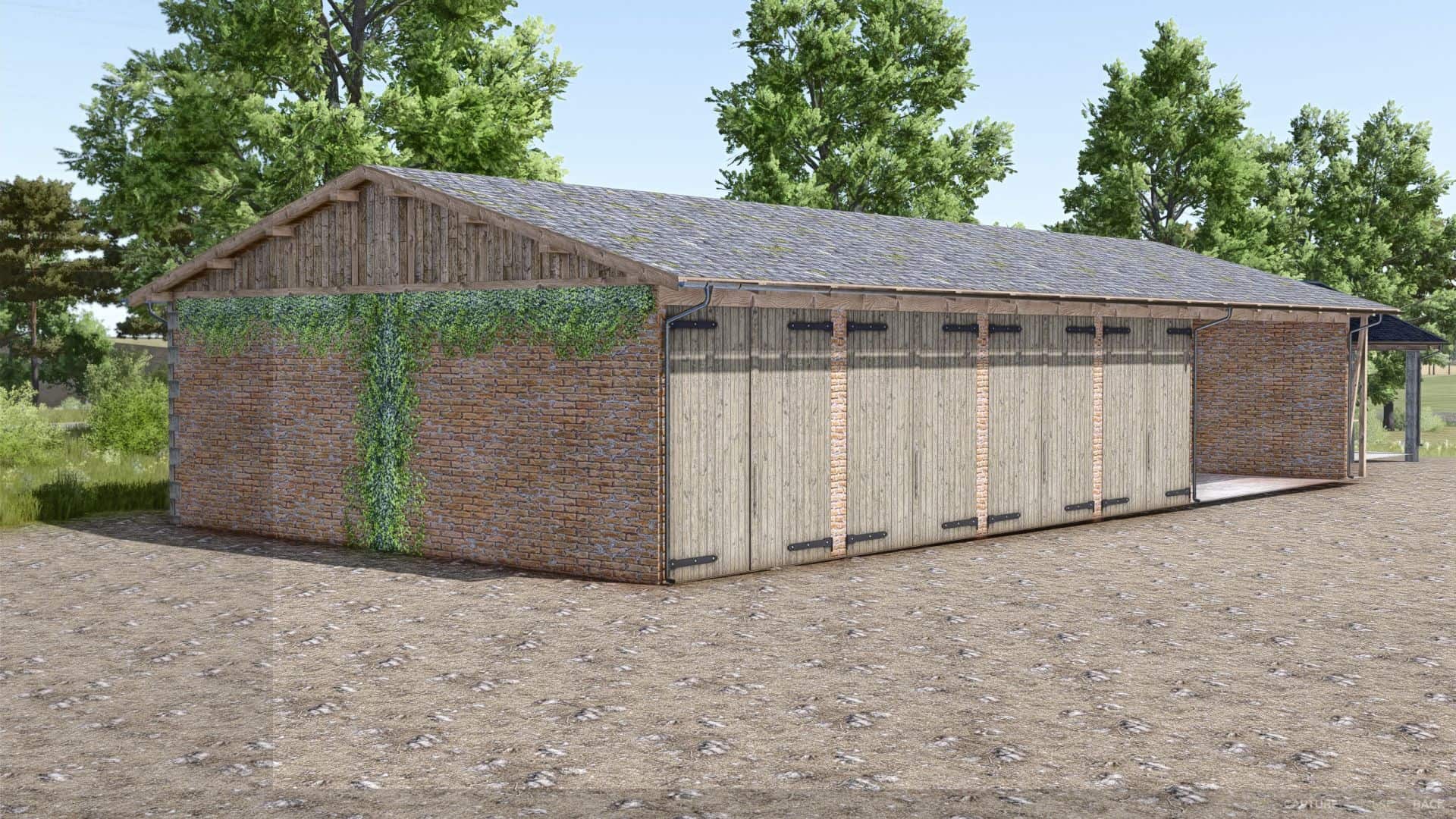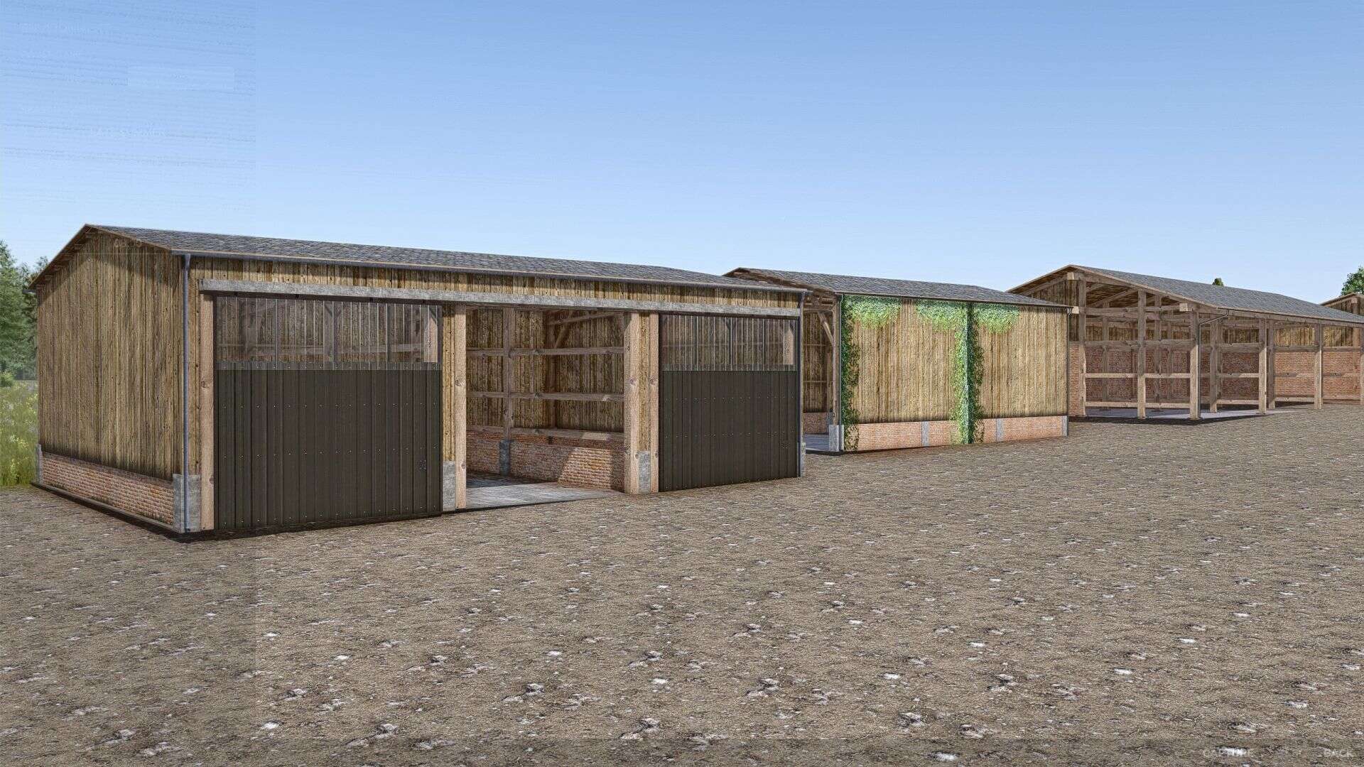 11 different vehicle sheds in various sizes – perfect for tractors, harvesters, and equipment.