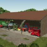 This building consists of a bunker silo and a slightly higher shelter for vehicles and machinery. The mod also includes a variant of the building where the actual bunker silo can be used as a wood chip storage.