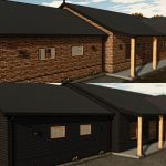 Building has garage for two cars, big living area with kitchen, two bedrooms and bathroom.