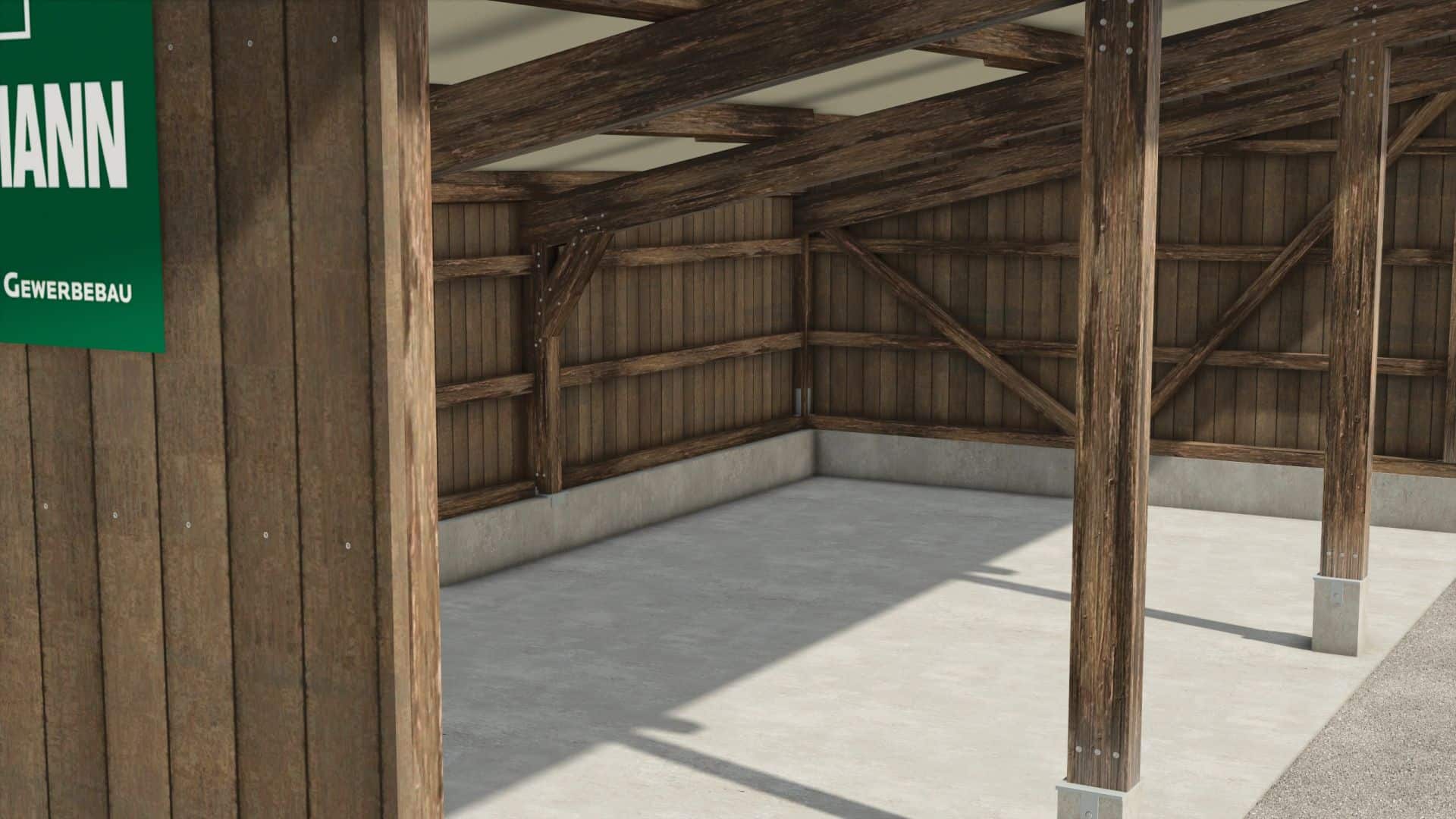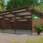 FS25 Small open garage with a dark wood look v1.0