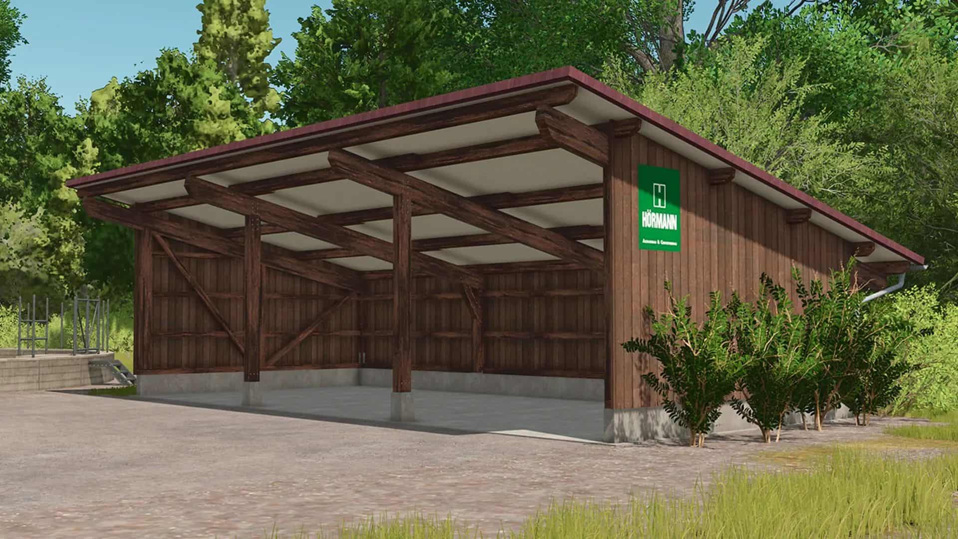 Finding a game interesting after investing 300 hours into it can become a bit challenging. But with mods as long as there is a new update is assured, you are guaranteed a few more hours of new exciting gameplay. FS 25 Buildings Mods are one of the greatest upgrades and can make your game unique. Downloading and adding FS25 Small open garage with a dark wood look v1.0 Mod to your game is not difficult at all - you simply need to save a file and run it.